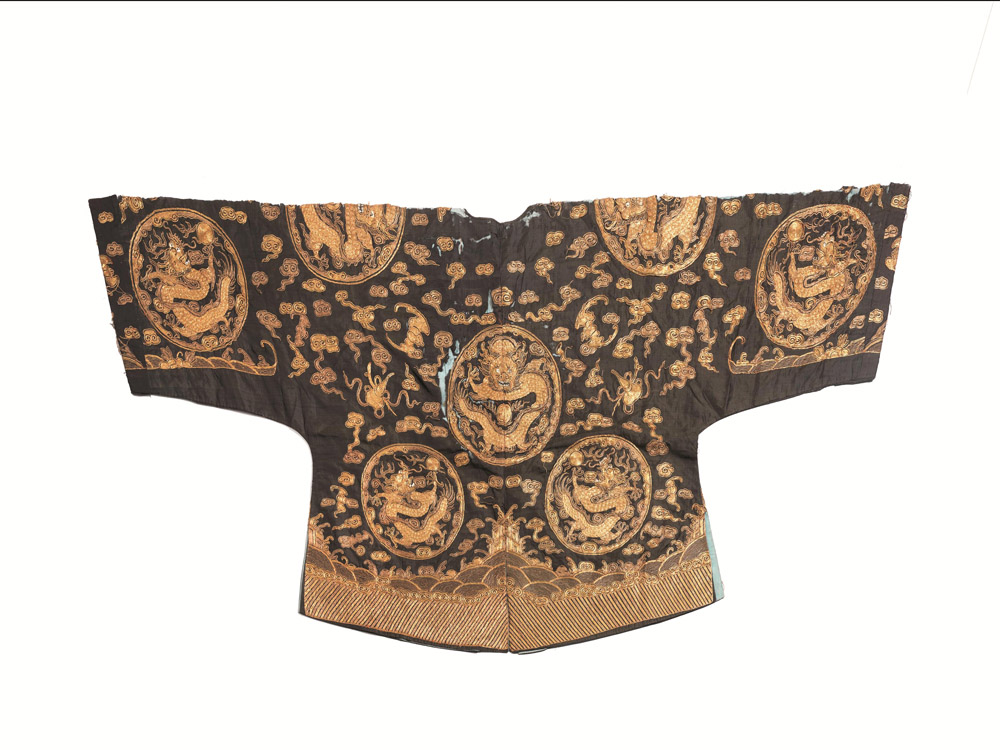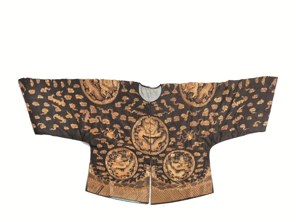 A SHORT SURCOAT WITH GOLD DRAGON CHINA 19TH CENTURY