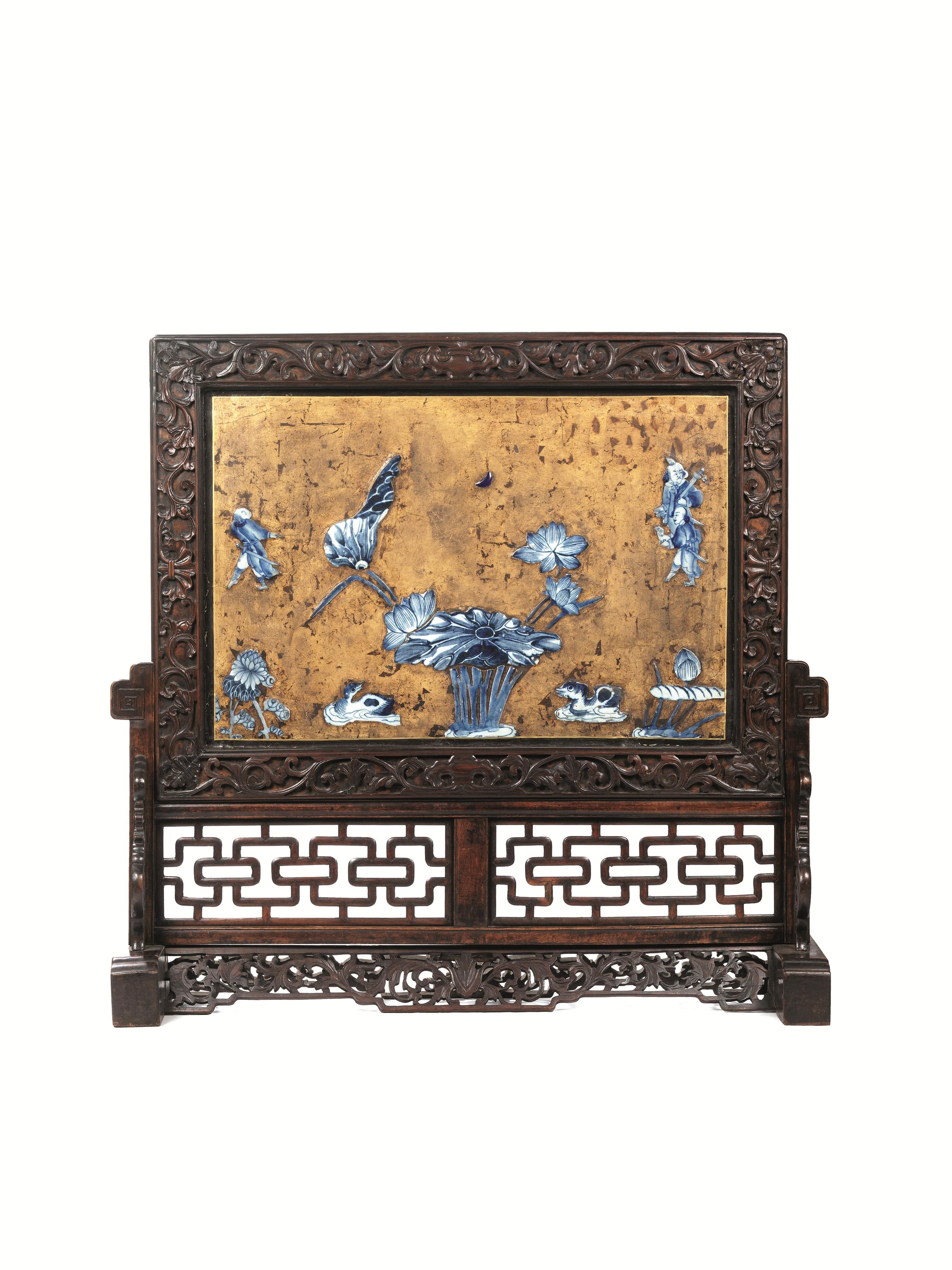 Lotto 39 | PARAFUOCO, CINA FINE SEC. XIX  in legno decorato con placche in...