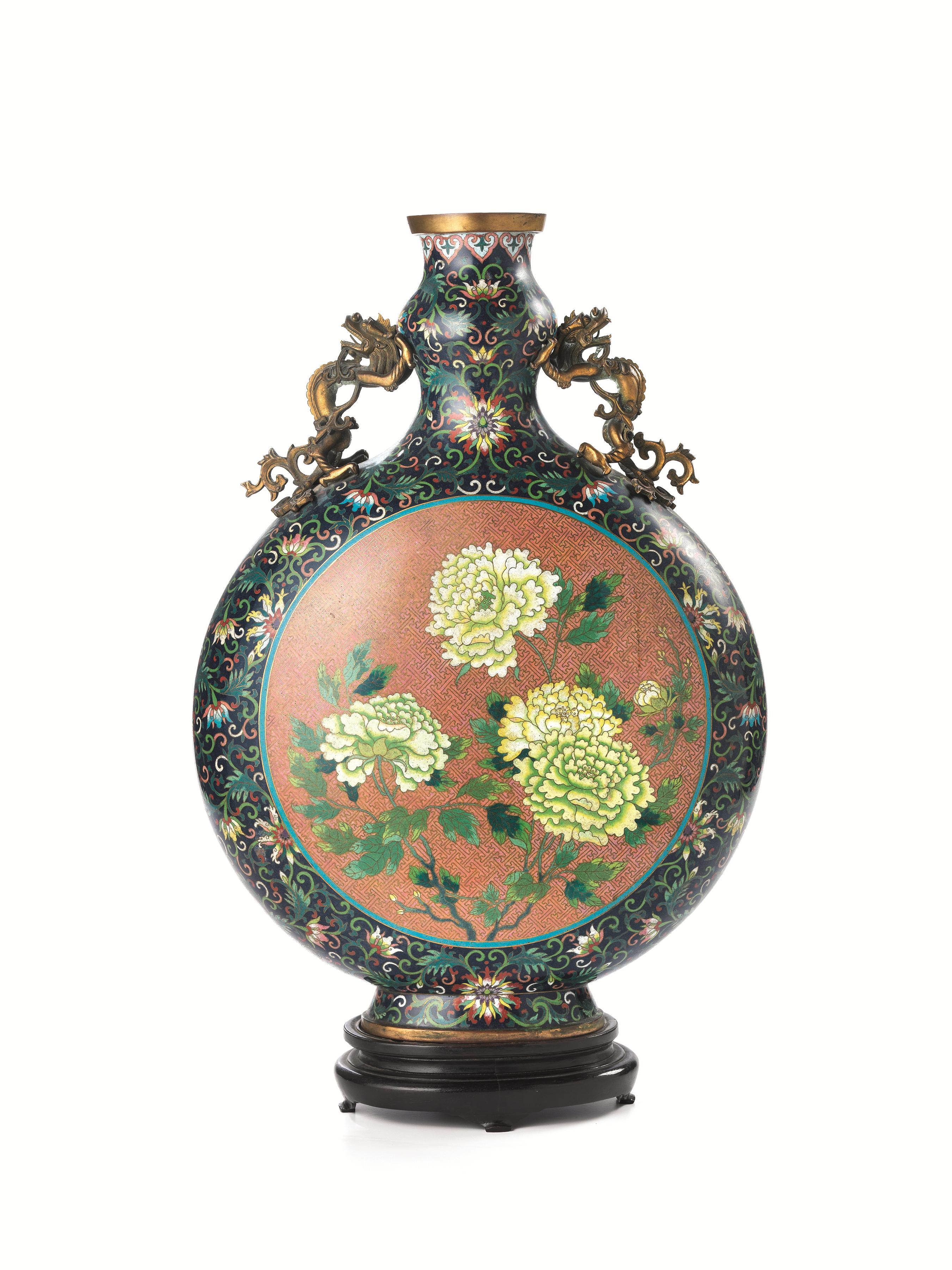 MOON FLASK CINA SEC. XIXin metallo cloisonné decorata sul fondo con...