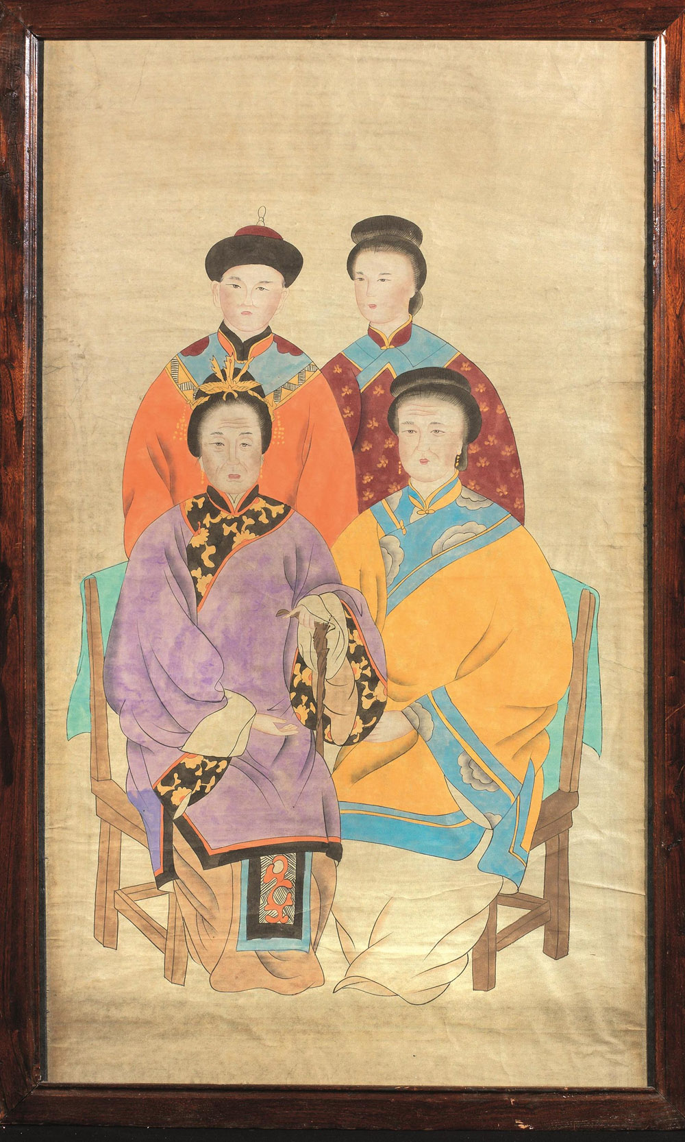 DIPINTO CINA SEC. XX su carta raffigurante ritratto familiare alt. cm...