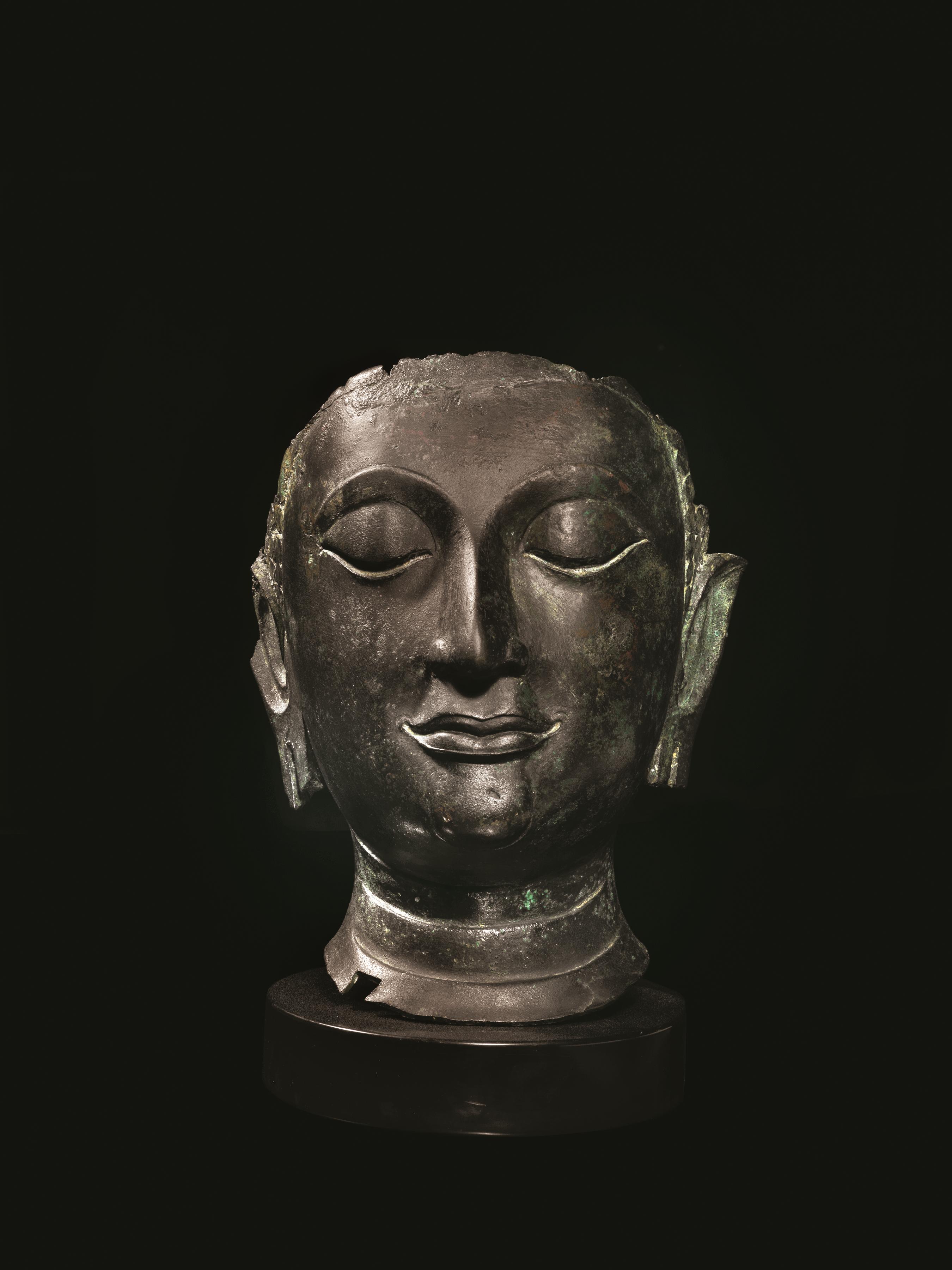 A THAI BRONZE BUDDHA HEAD 16TH -18TH CENTURY