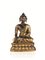 In bronzo dorato raffigurante Shakyamuni Buddha assiso su base a fior di loto, le mano destra in bhumisparshamudra e la sinistra in indhyanamudra, vestito con un drappo drappeggiato sulla spalla e ripreso sul petto, il volto dall'espressione serena e gli occhi rivolti verso il basso. alt. cm 26