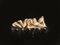 modellato nella forma di nudo femminile disteso nell'atto di allattare un bimbo, ambedue adagiati su una foglia, lung. cm 12,5, poggiante su base in legno