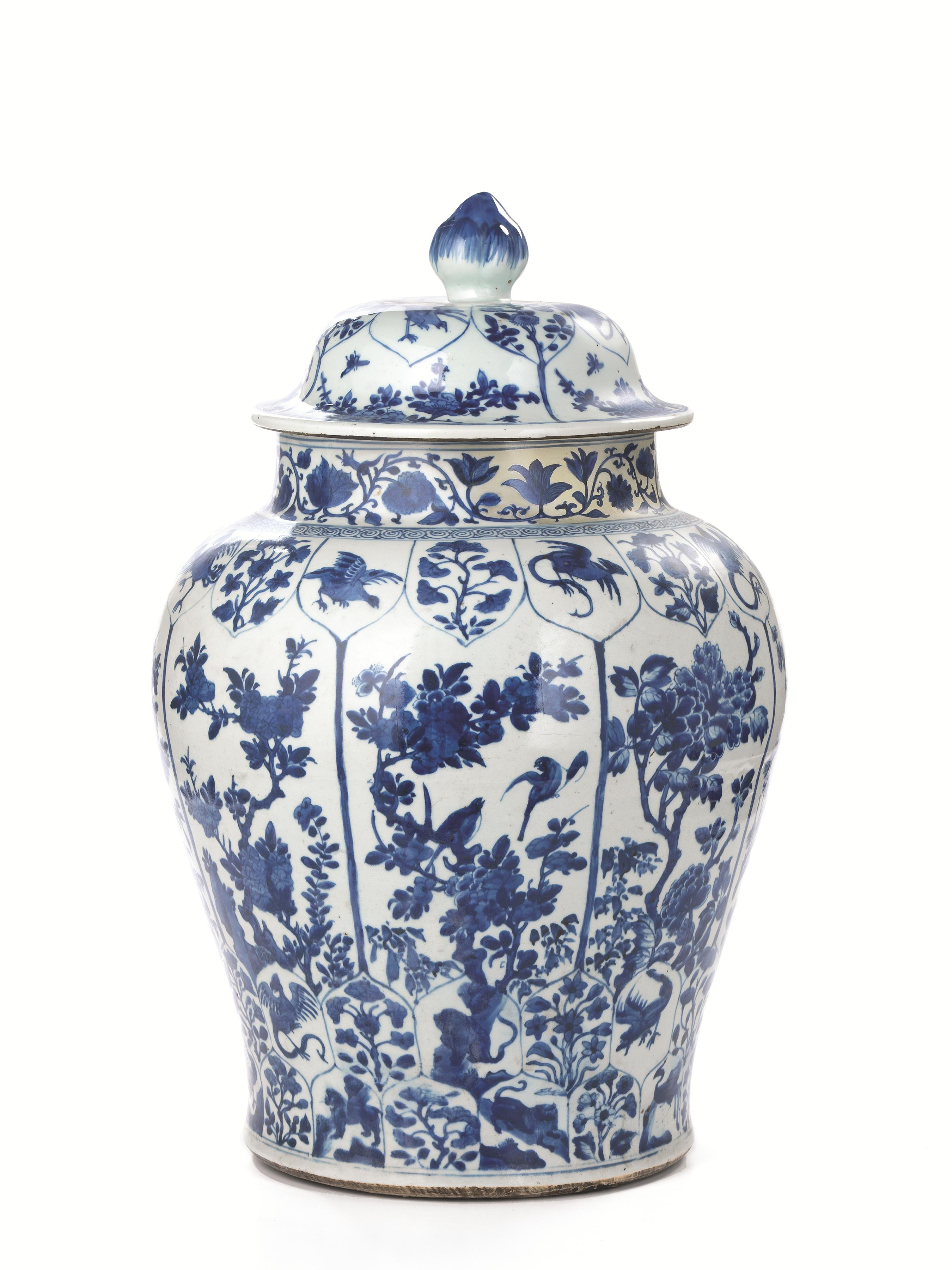 A BLUE AND WHITE PORCELAIN POTICHES WITH COVER CHINA 17TH 18TH CENTURY