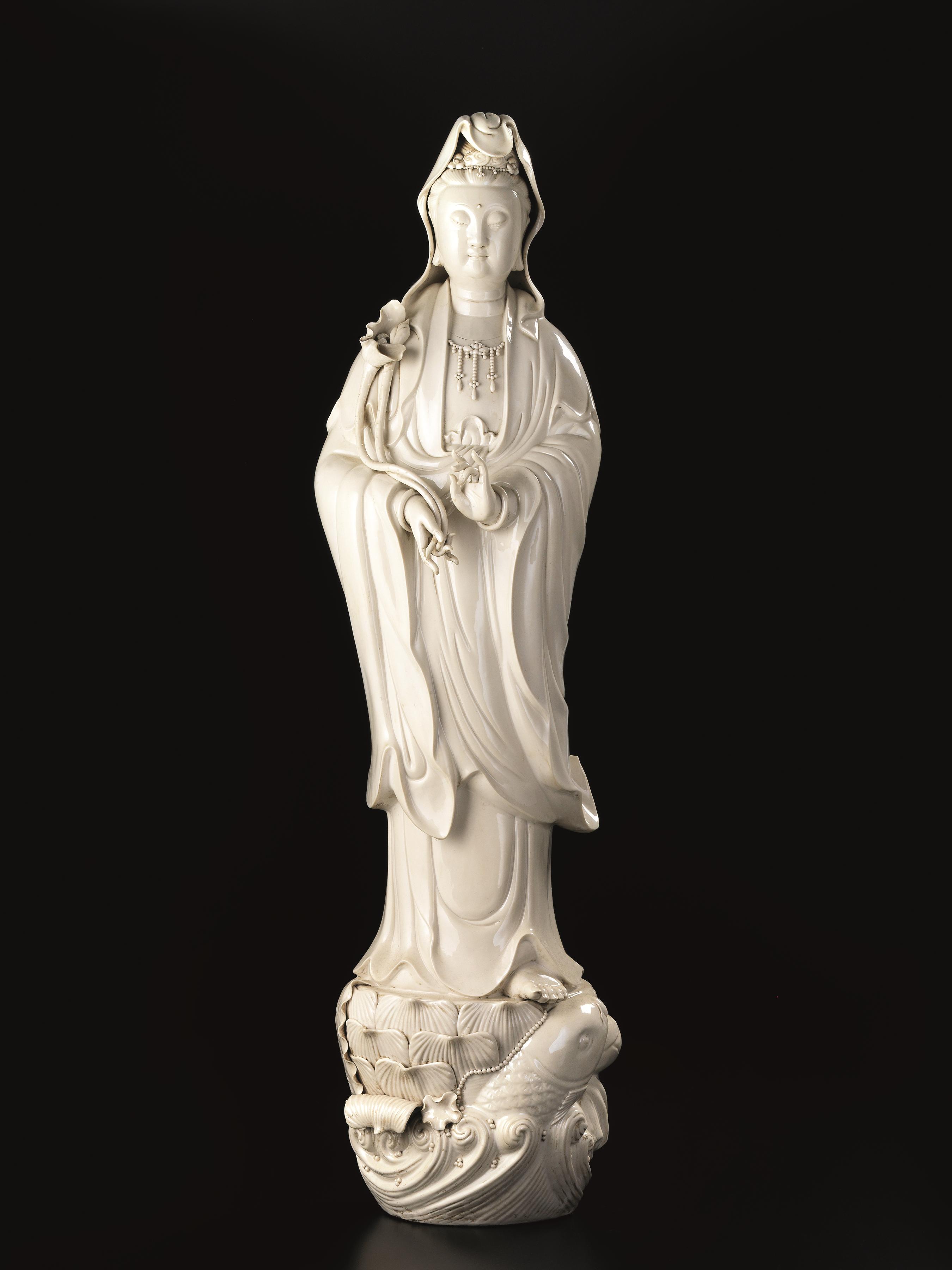 SCULTURA CINA SEC. XX in porcellana bianca raffigurante Guanyin stante su...