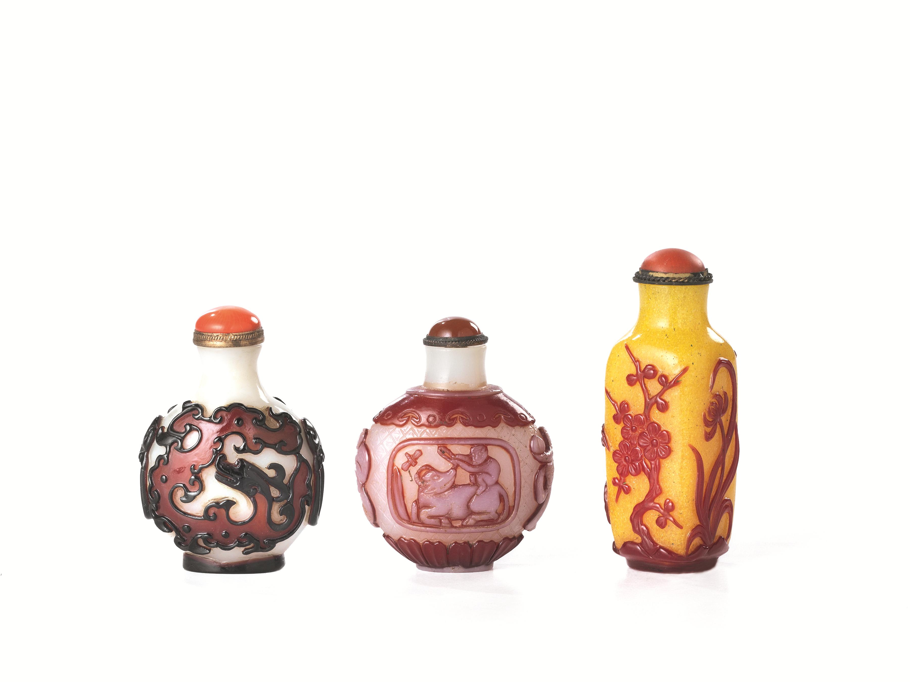 TRE OVERLAY GLASS SNUFF BOTTLES CHINA 20TH CENTURY