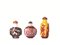TRE SNUFF BOTTLES CINA SEC. XX in vetro a rilievo con fiori personaggi...