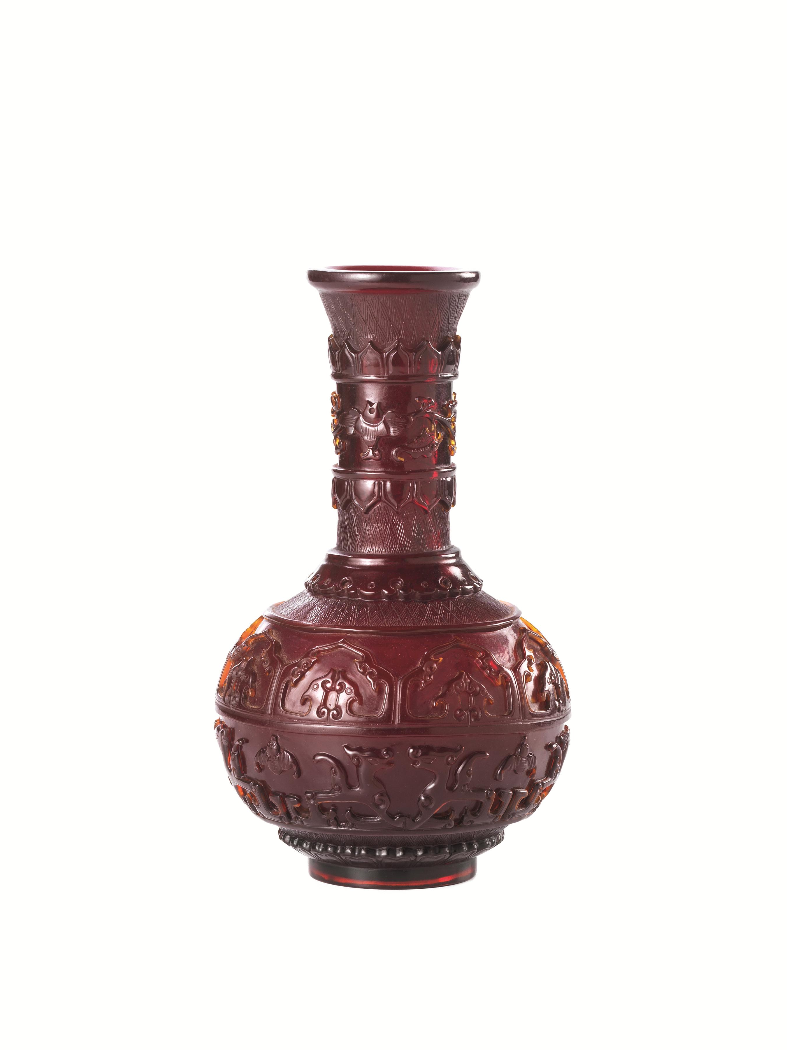 VASO CINA SEC. XXin vetro decorato a rilevo con motivi pipistrelli e figure...