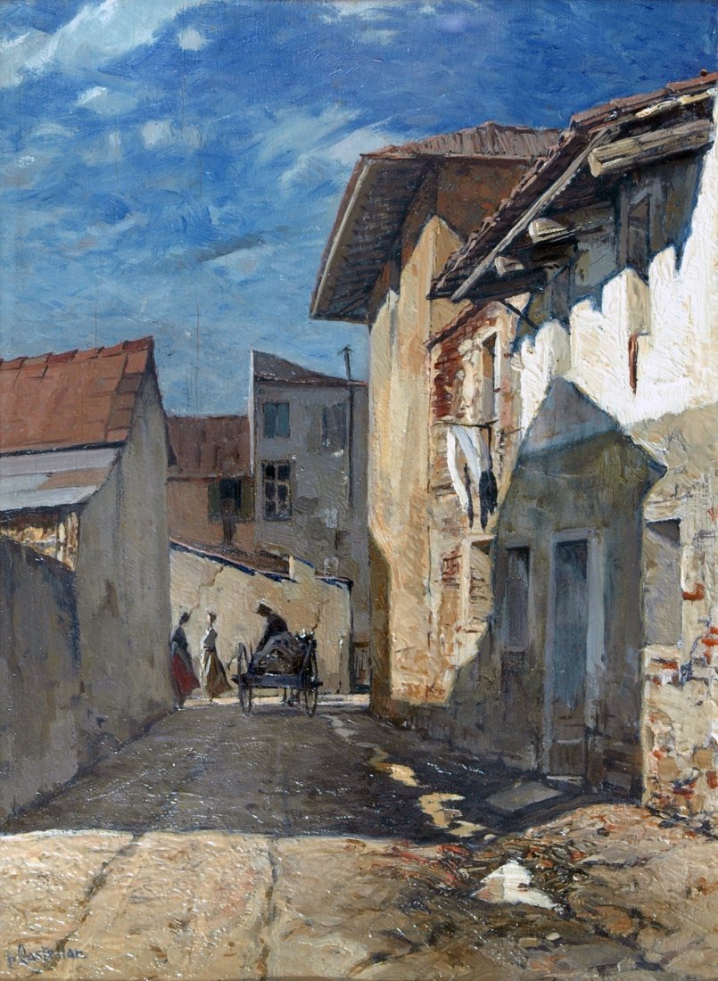 Firmato P. Castellan in basso a sinistra; sul retro, il titolo Case di Vilès (Gorizia) e la data di composizione Dicembre 1936, quasi certamente di mano dell'autore