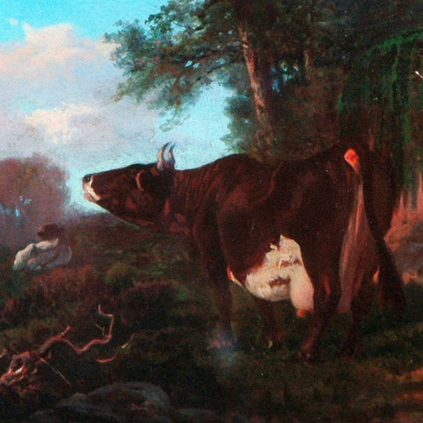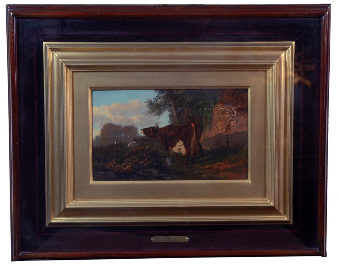 PIETRO SENNO(Portoferraio 1831 - Pisa 1904)Maremma con cane e muccaOlio su...