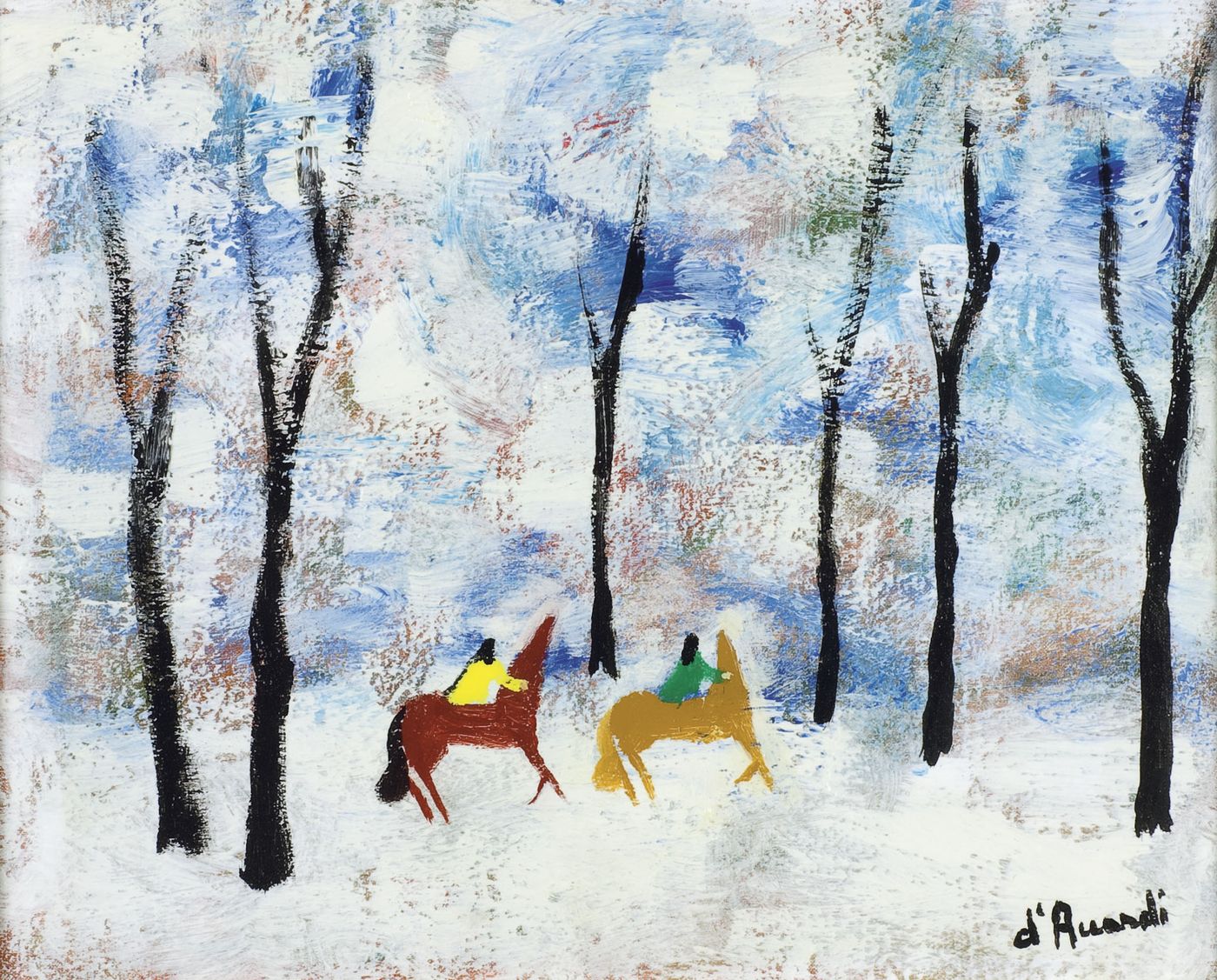 D'ACCARDI GIAN RODOLFO (Palermo 1906) - "Cavalieri nella neve", 24x30 olio su...