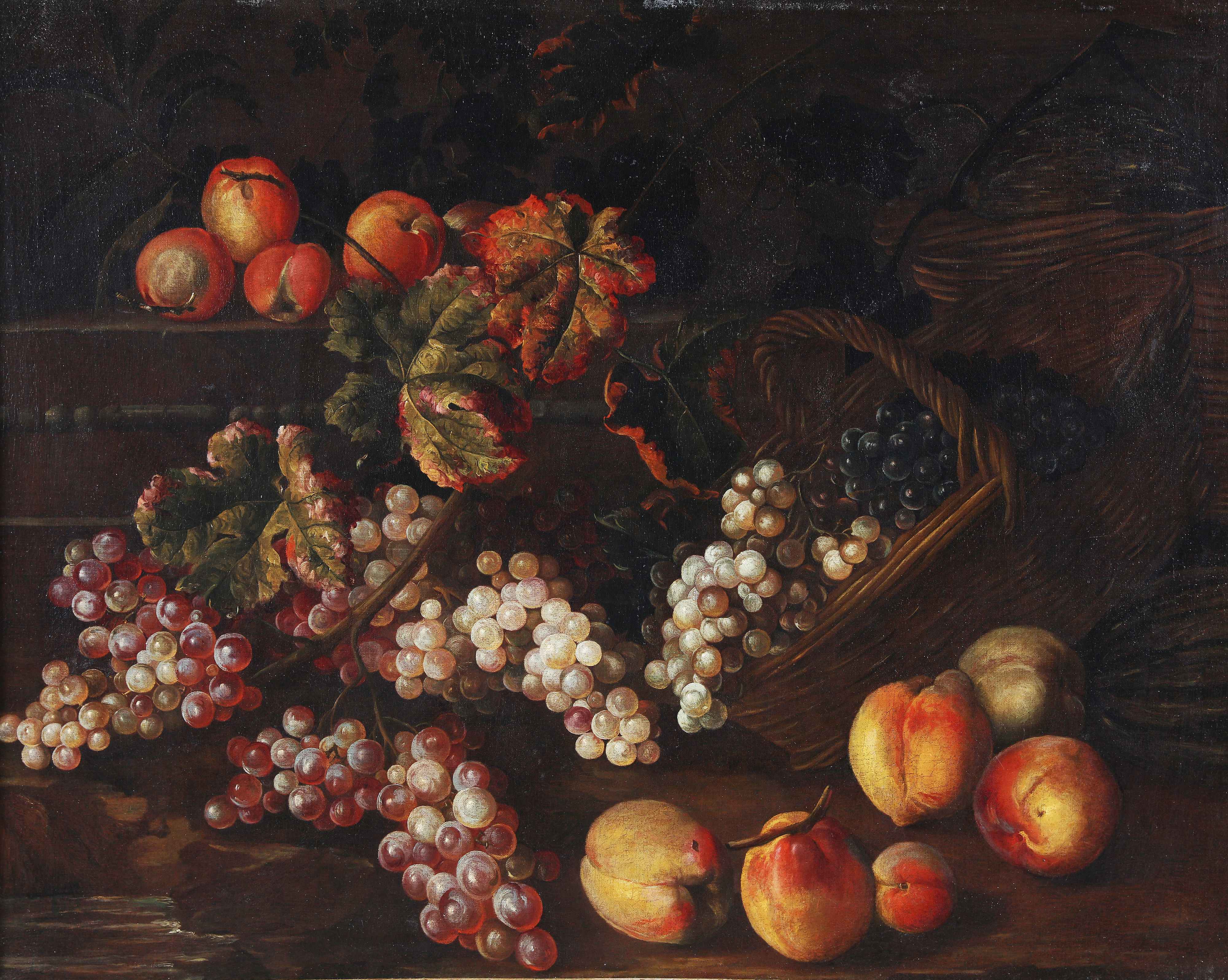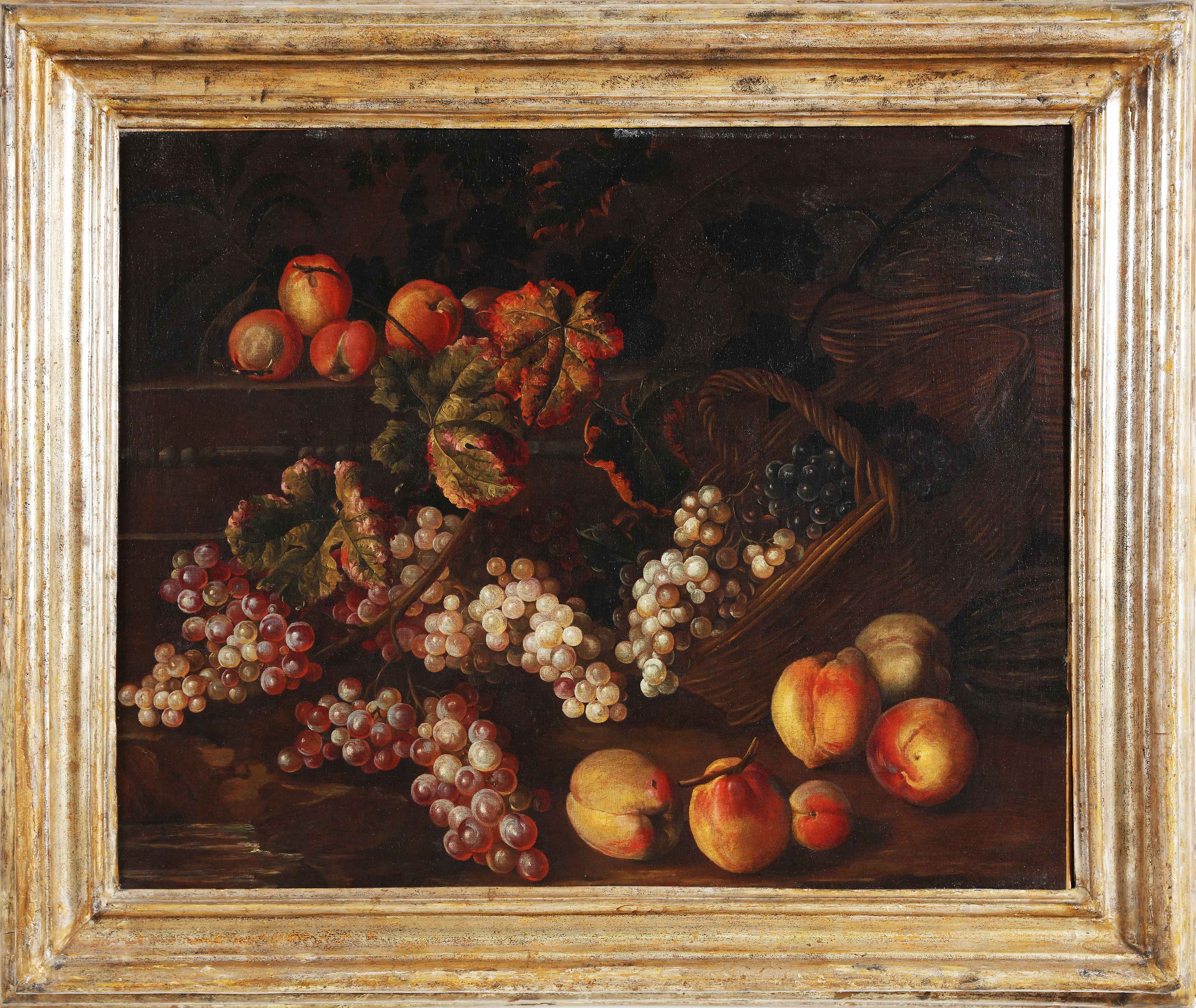 RUOPPOLO GIUSEPPE (1629 - 1693) Natura morta di pesche, uva e meloni. Olio su...