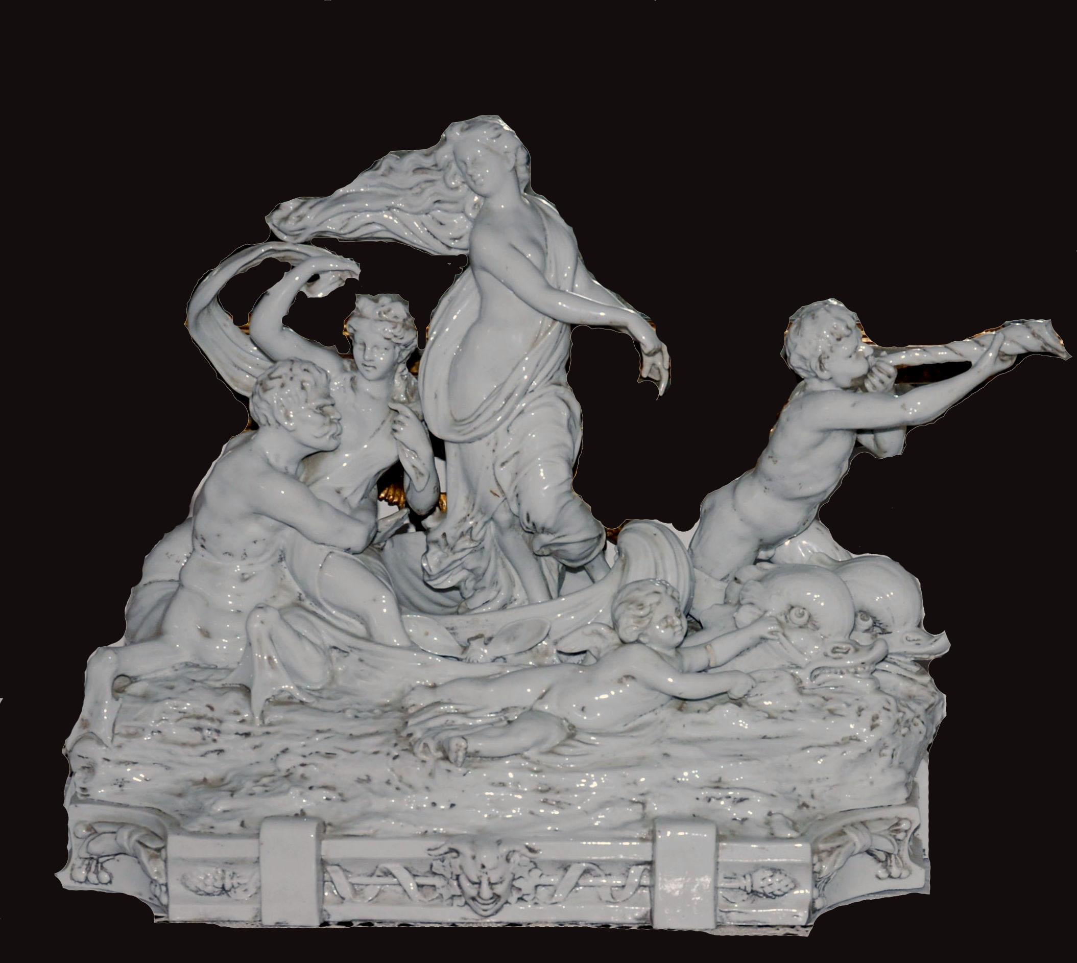 MANIFATTURA TEDESCA DEL XVIII SECOLO Nascita di Venere. Porcellana. Cm 36,00 x 43,00 x 20,00. Difetti.
