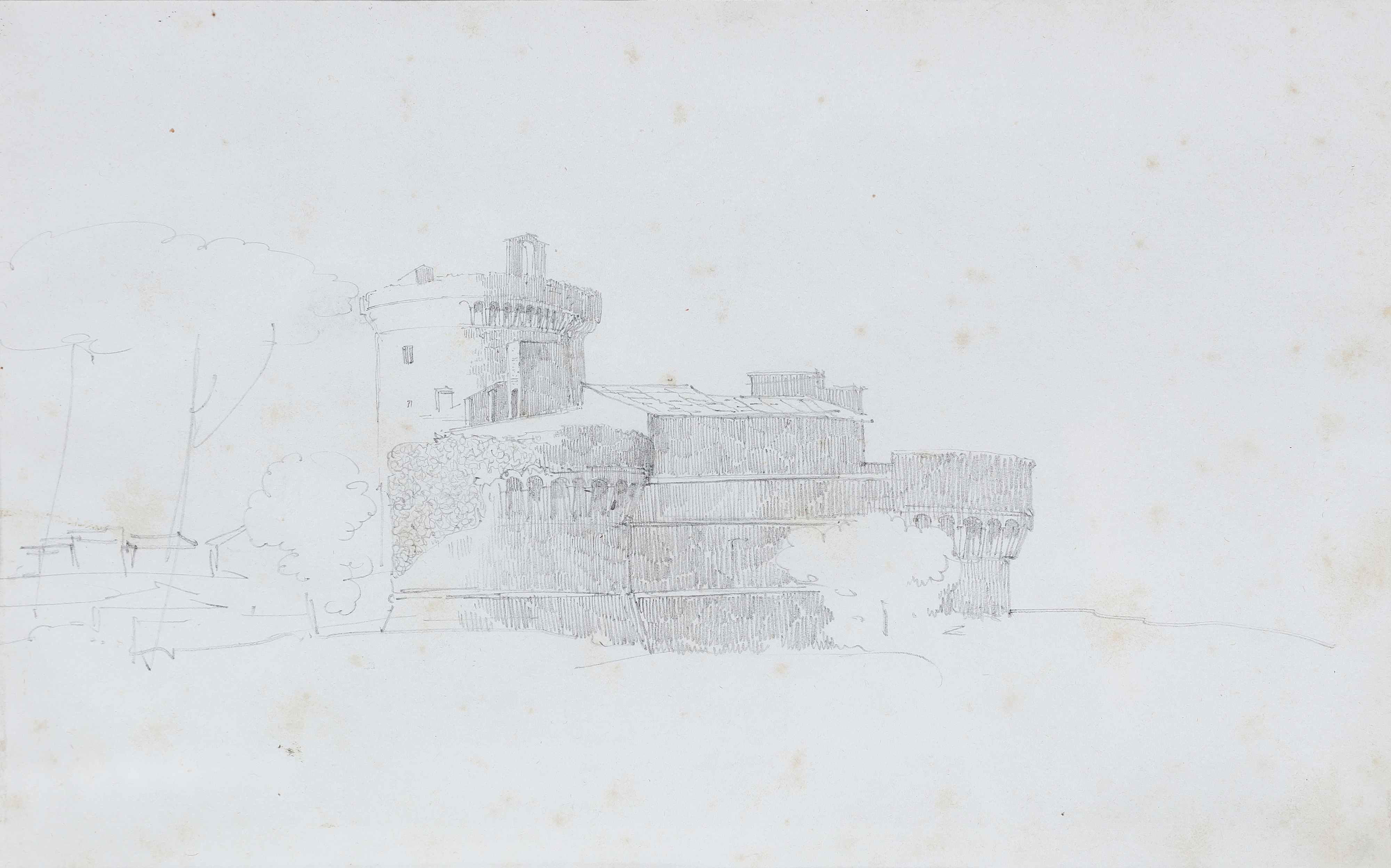 BASILETTI LUIGI (1780 - 1860) Studio con castello. Matita su carta. Cm 22,00...