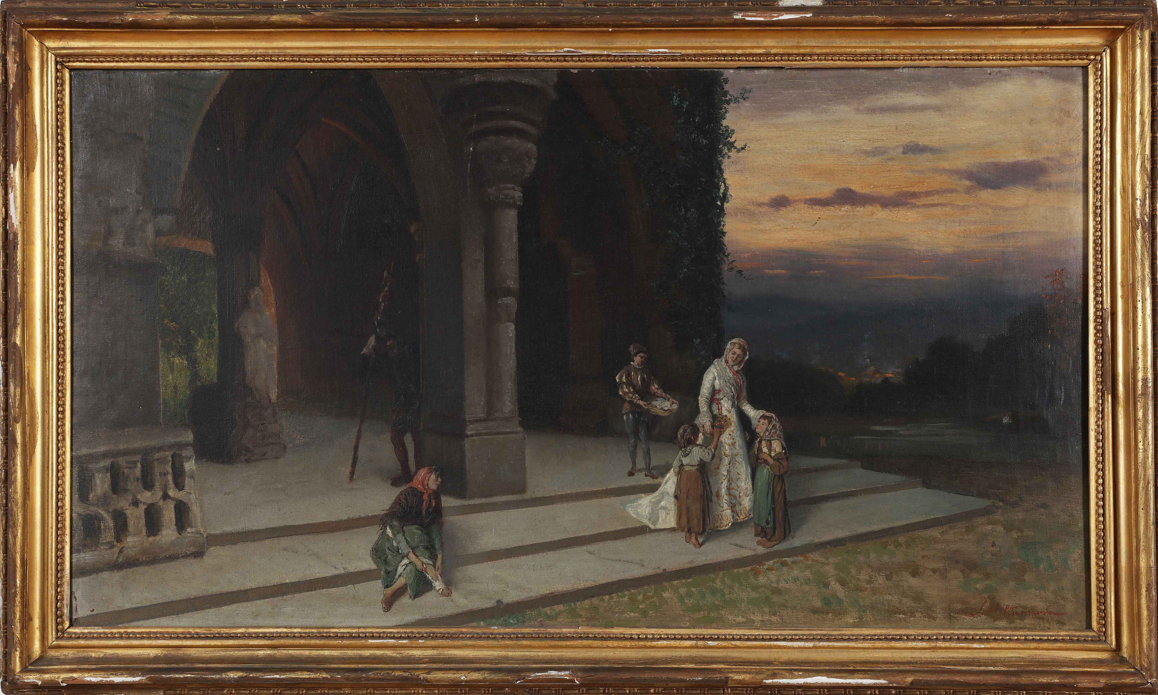 ALTAMURA SAVERIO FRANCESCO (1826 - 1897) Dopo la messa. Olio su tela . Cm 74,00 x 41,50. Firma in basso a destra. Cornice presente
