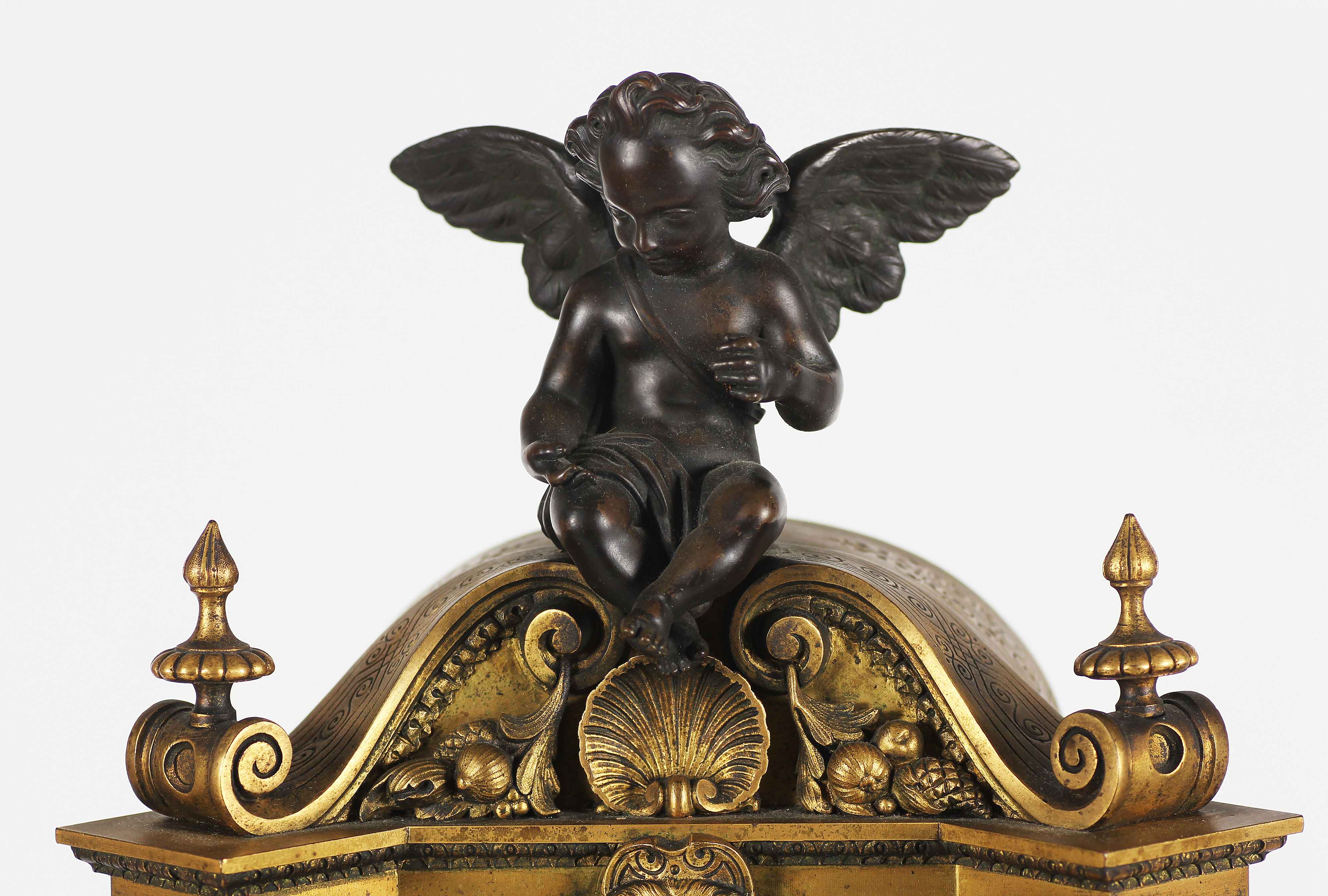 MANIFATTURA DENIERE PARIGI XIX SECOLO Orologio da tavolo dorato con elementi...