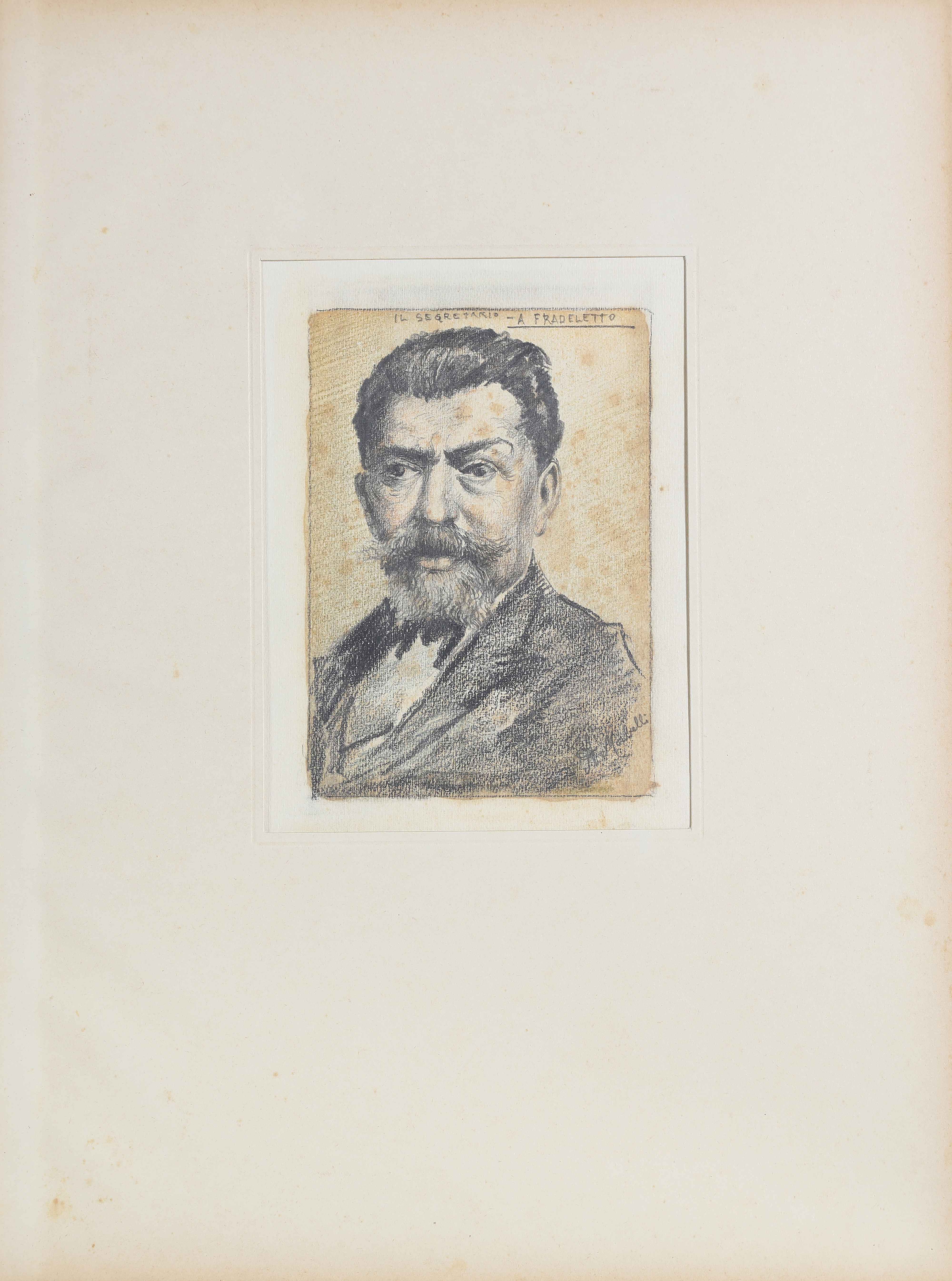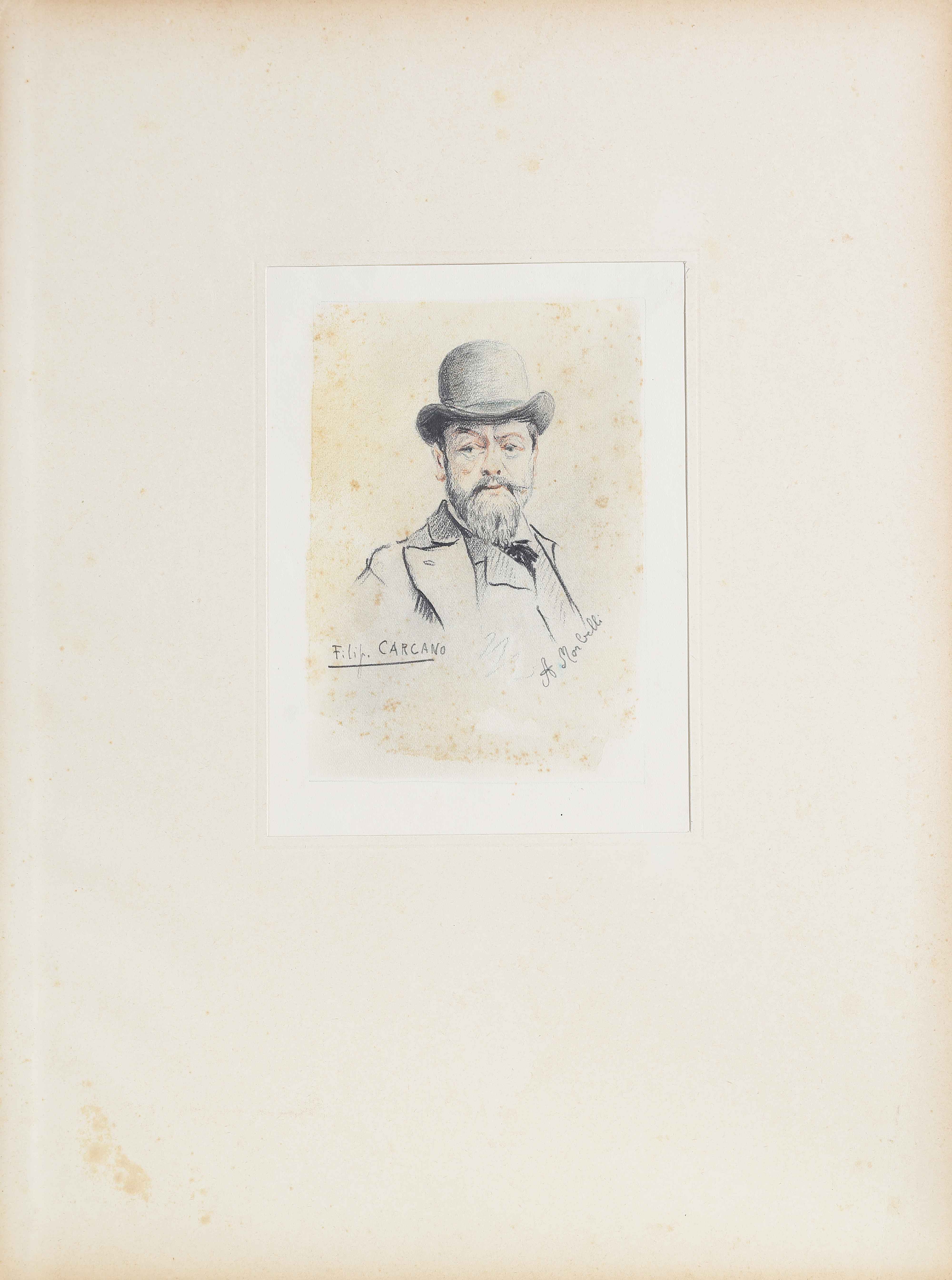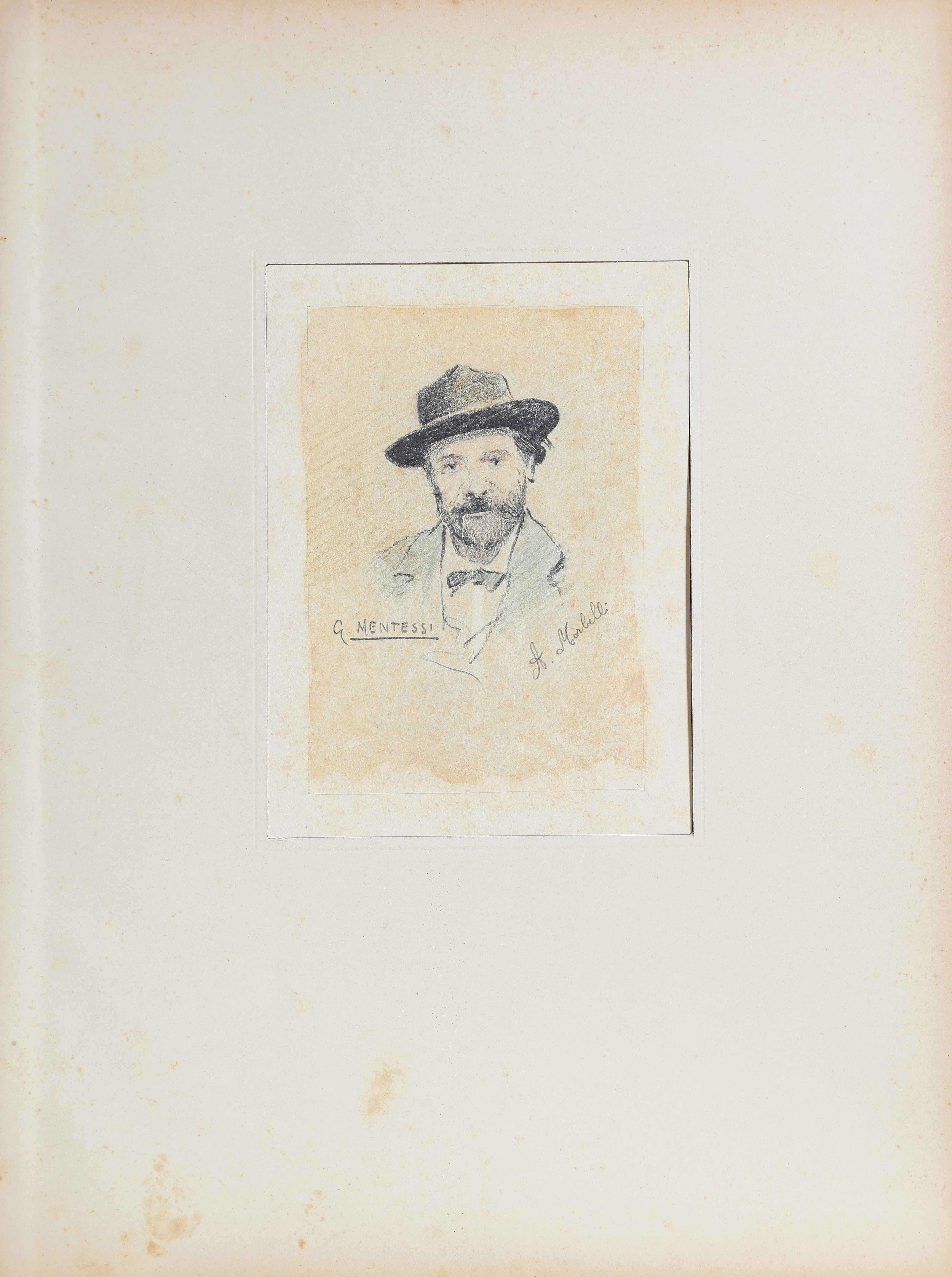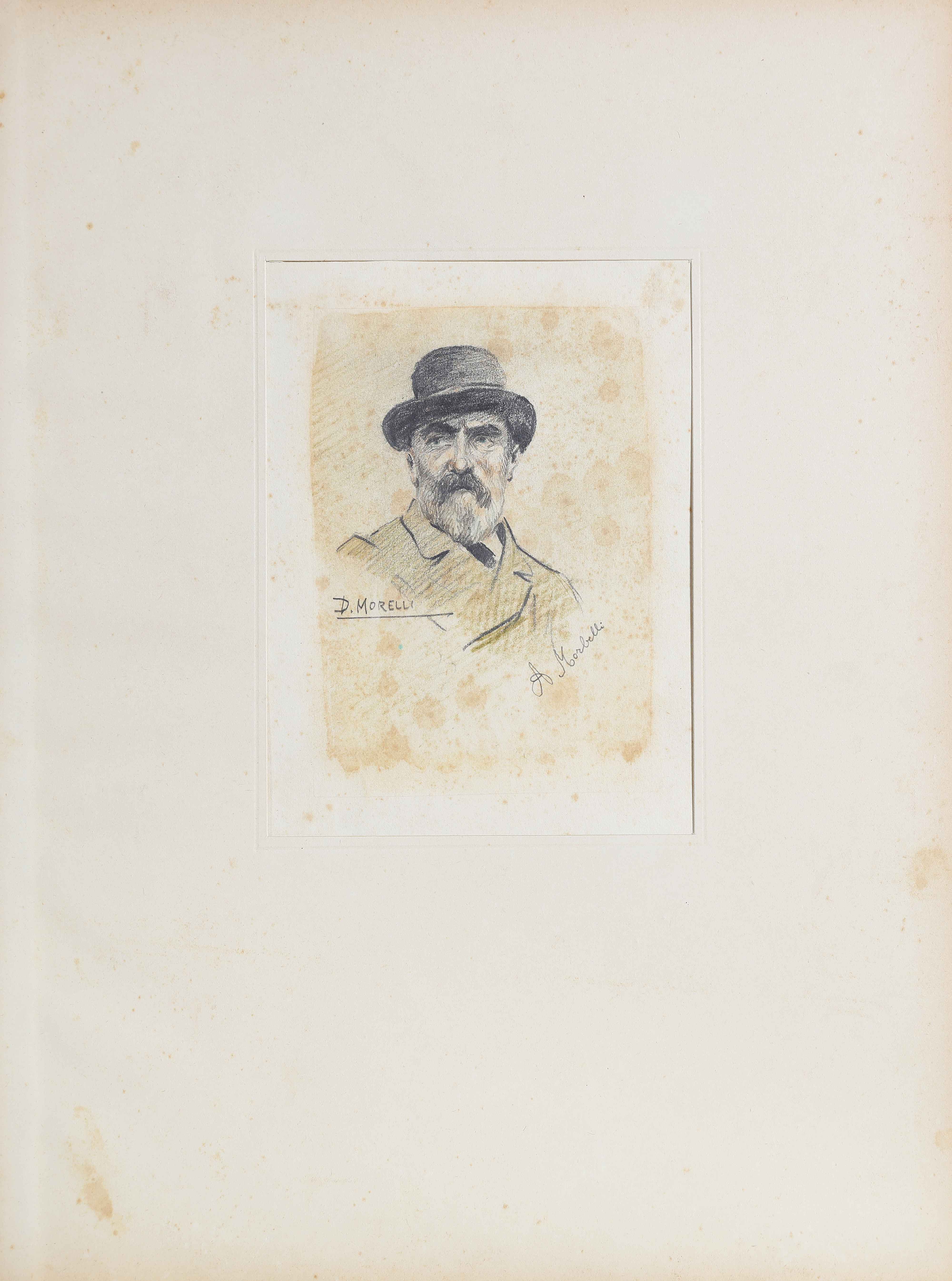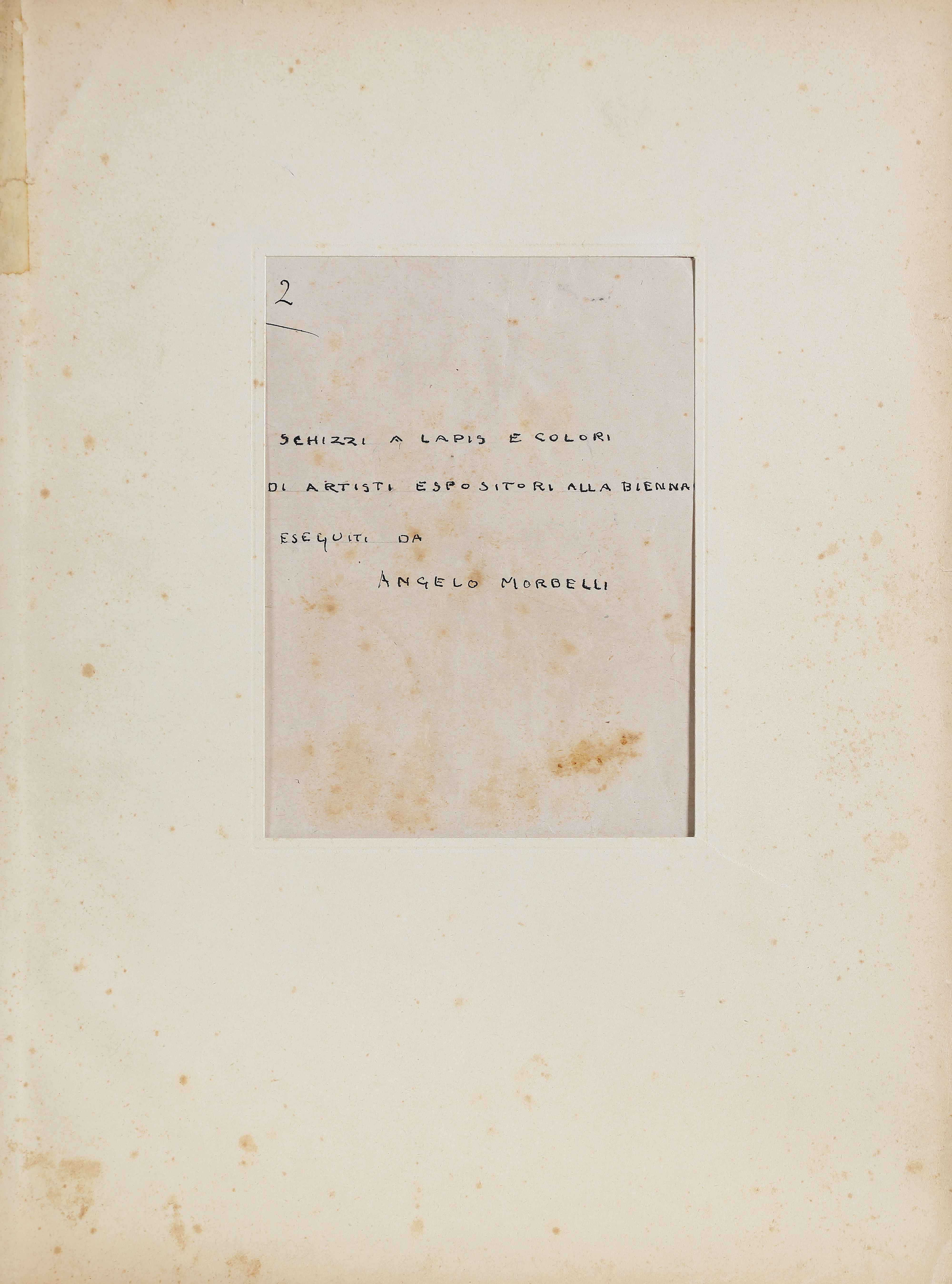MORBELLI ANGELO (1853 - 1919) Cartella contenente 30 ritratti di artisti. Carta. Cm 13,00 x 22,00. I ritratti rappresentano personaggi e artisti presenti alla Biennale di Venezia, 1879. Inseriti nel loro quaderno originale. Provenienza: Collezione Andrea Gloria, Padova. Firmati.