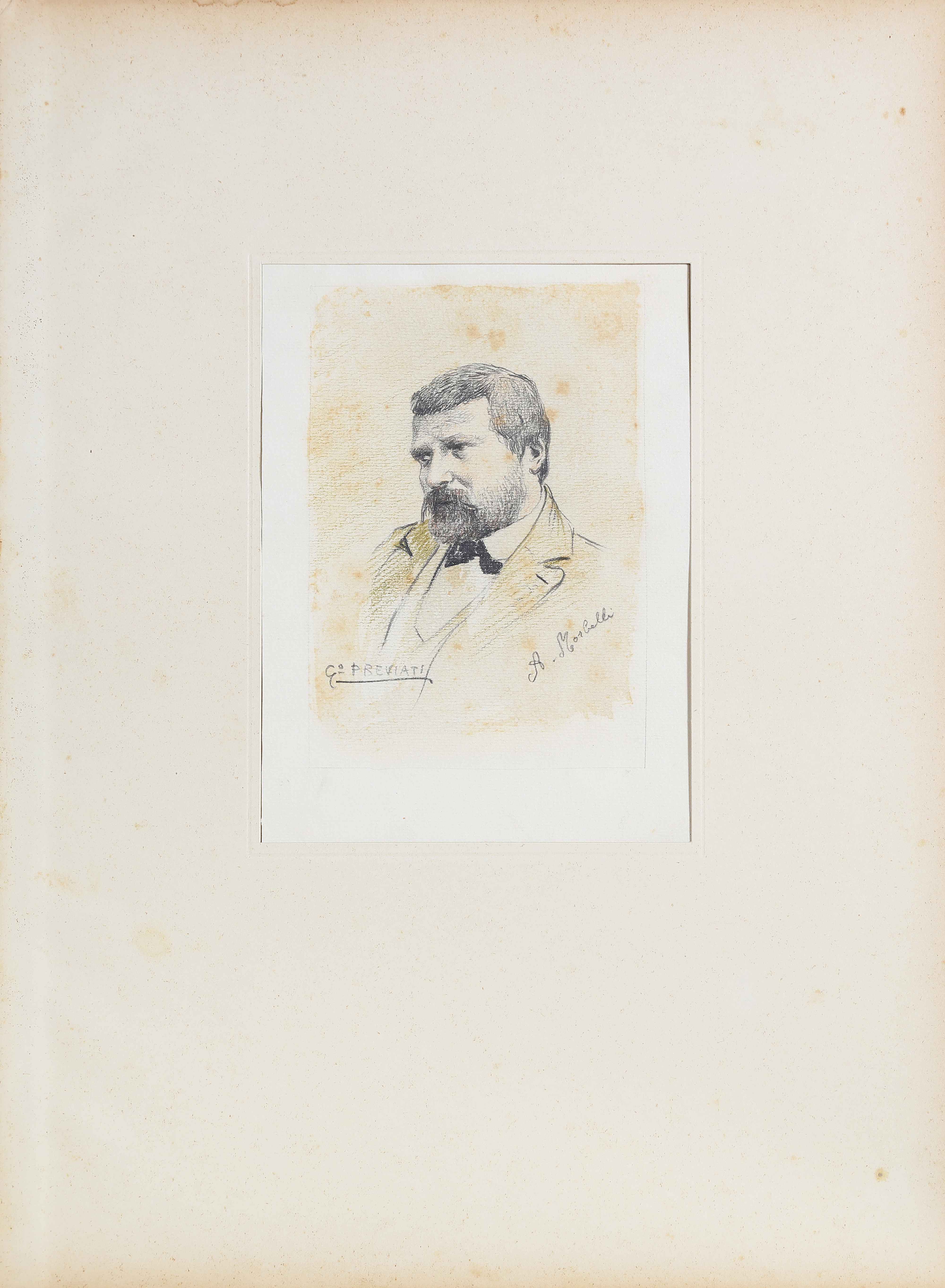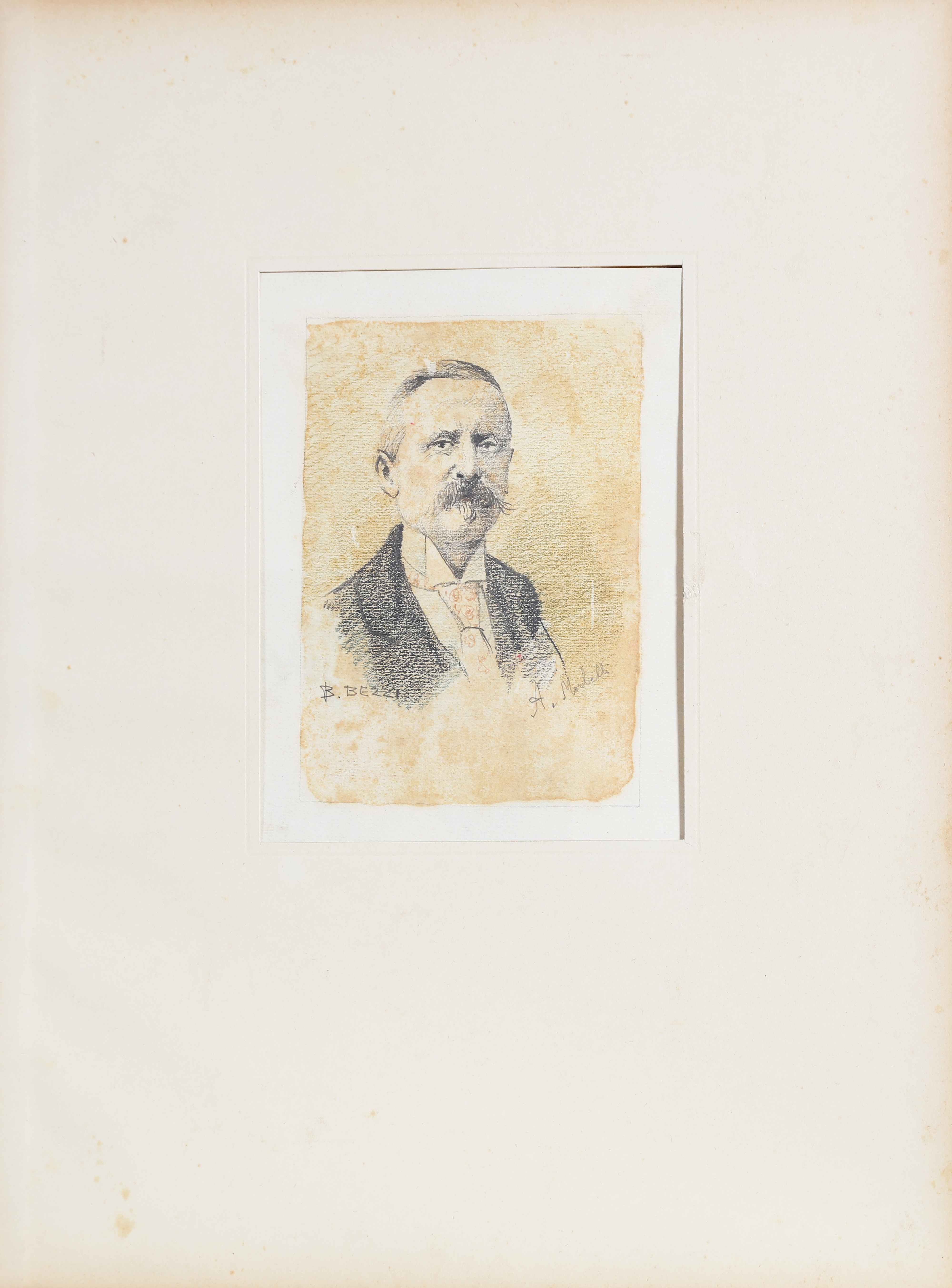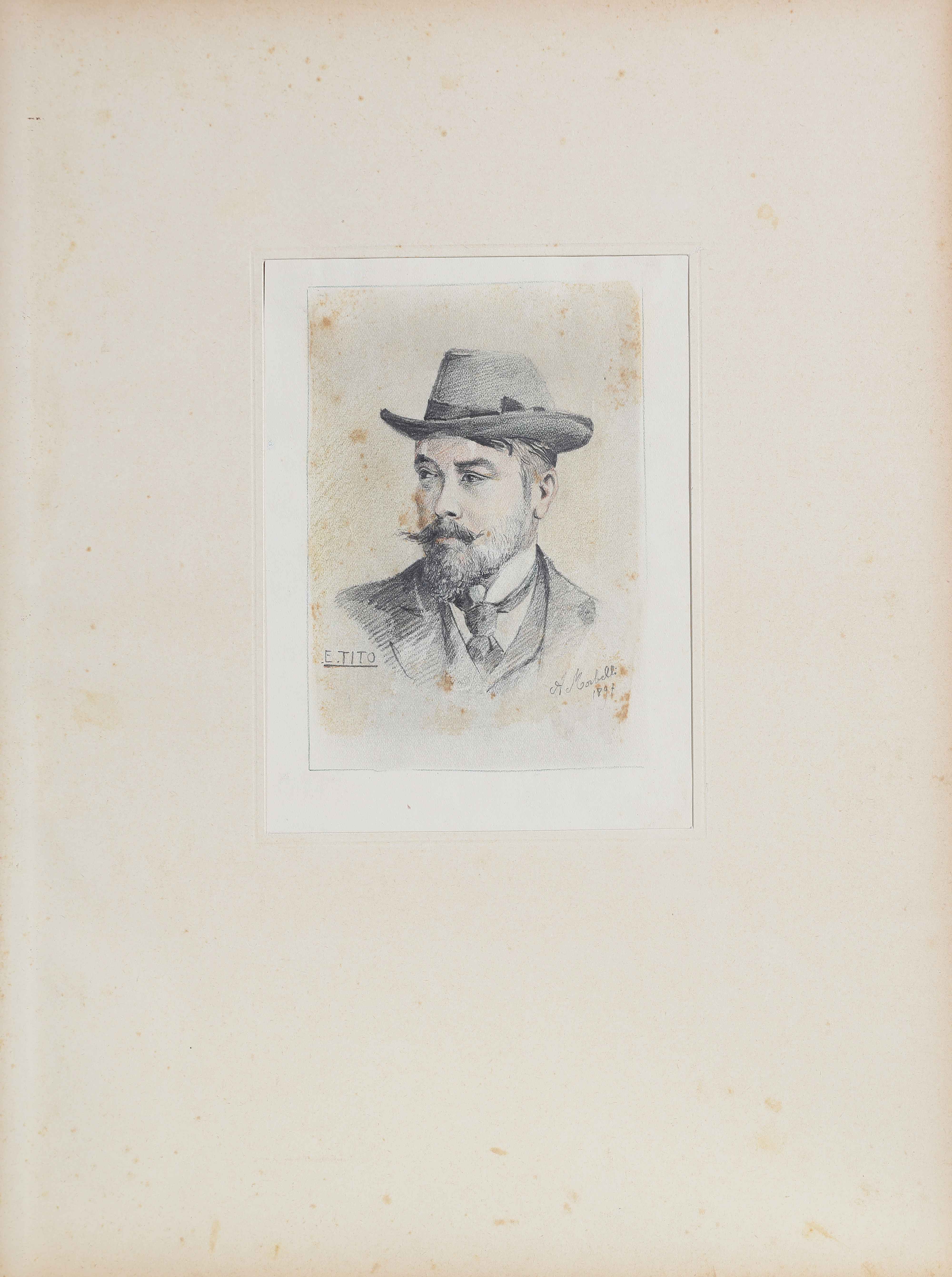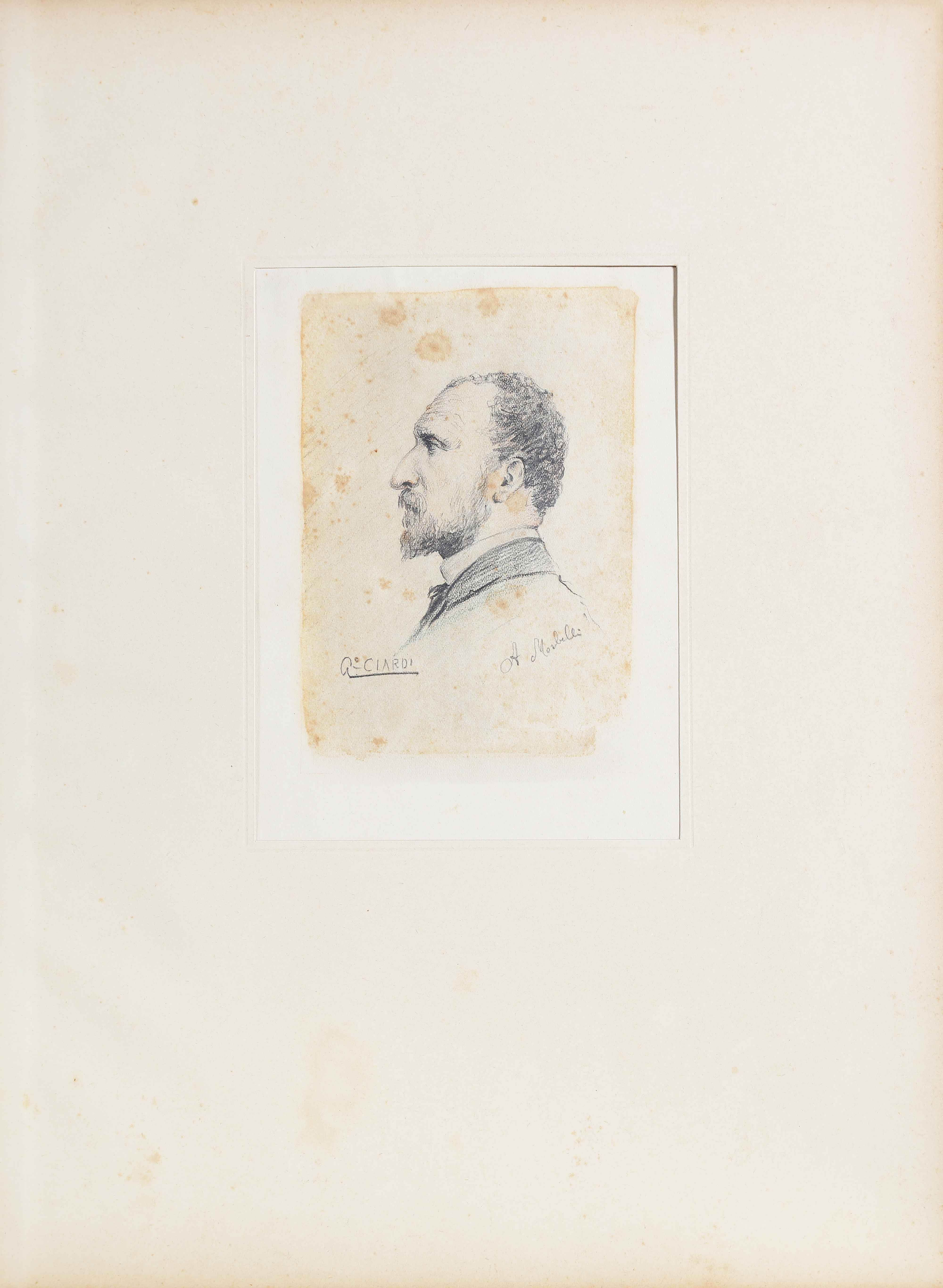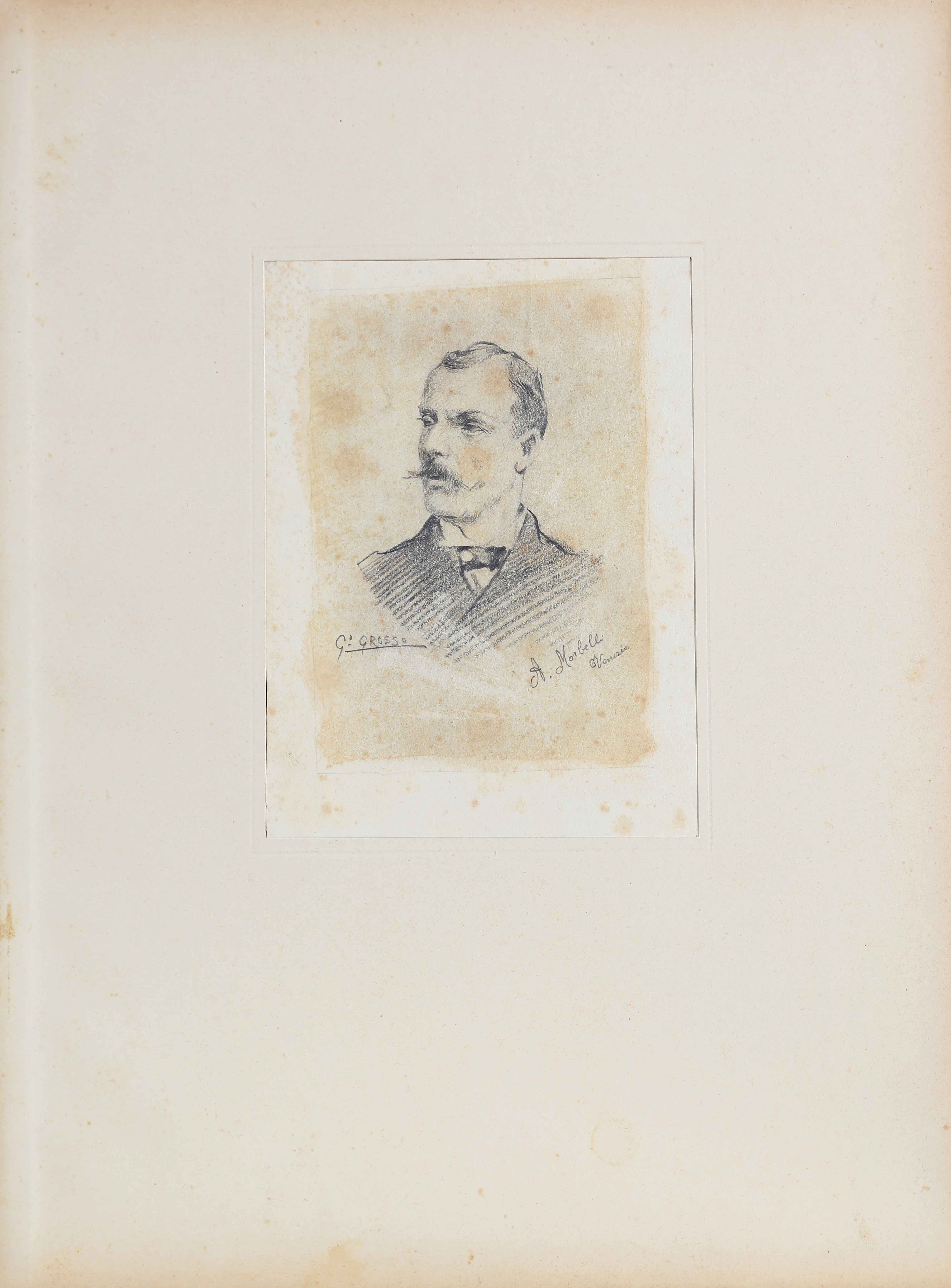 MORBELLI ANGELO (1853 - 1919) Cartella contenente 30 ritratti di artisti. Carta. Cm 13,00 x 22,00. I ritratti rappresentano personaggi e artisti presenti alla Biennale di Venezia, 1879. Inseriti nel loro quaderno originale. Provenienza: Collezione Andrea Gloria, Padova. Firmati.
