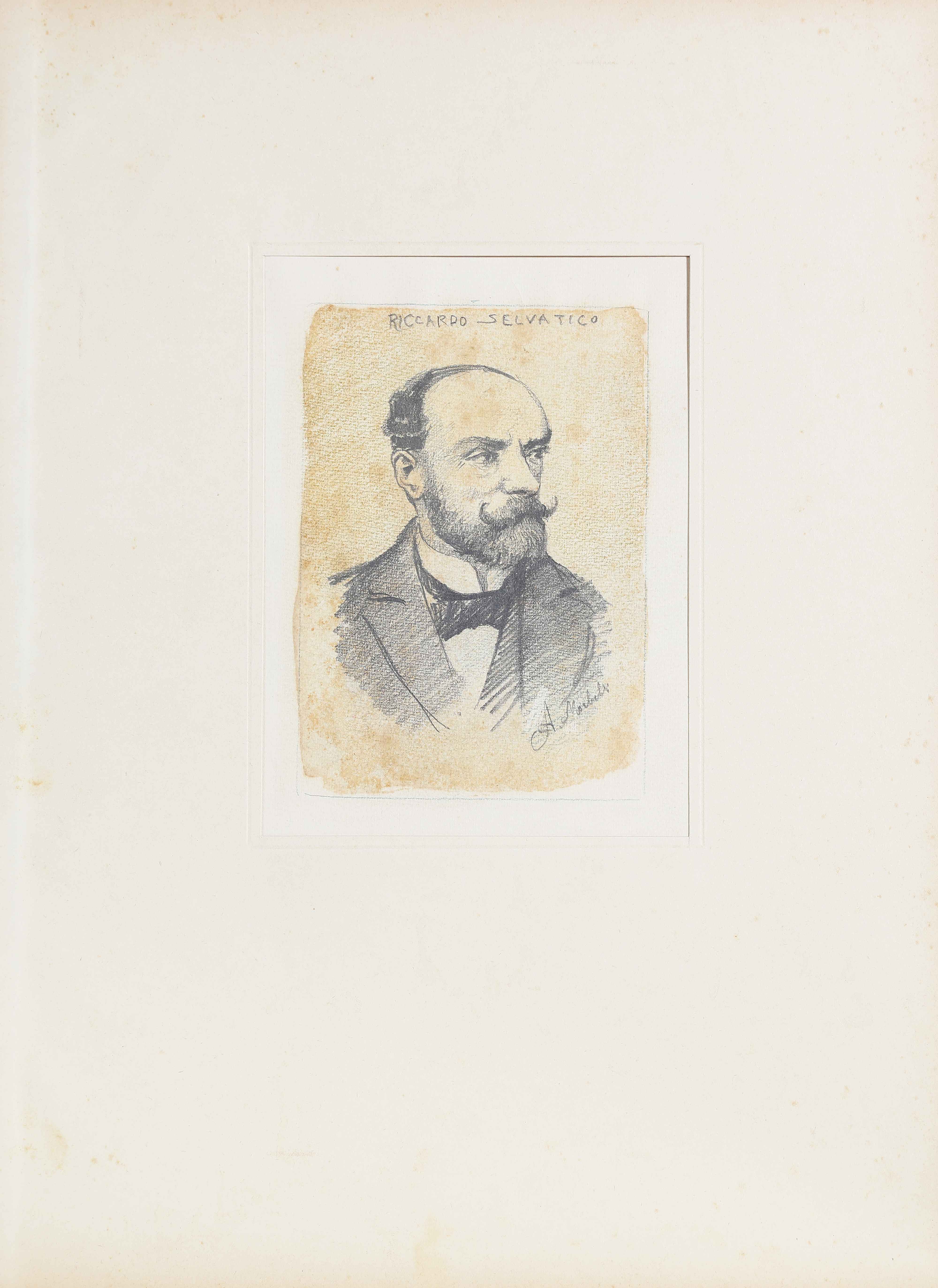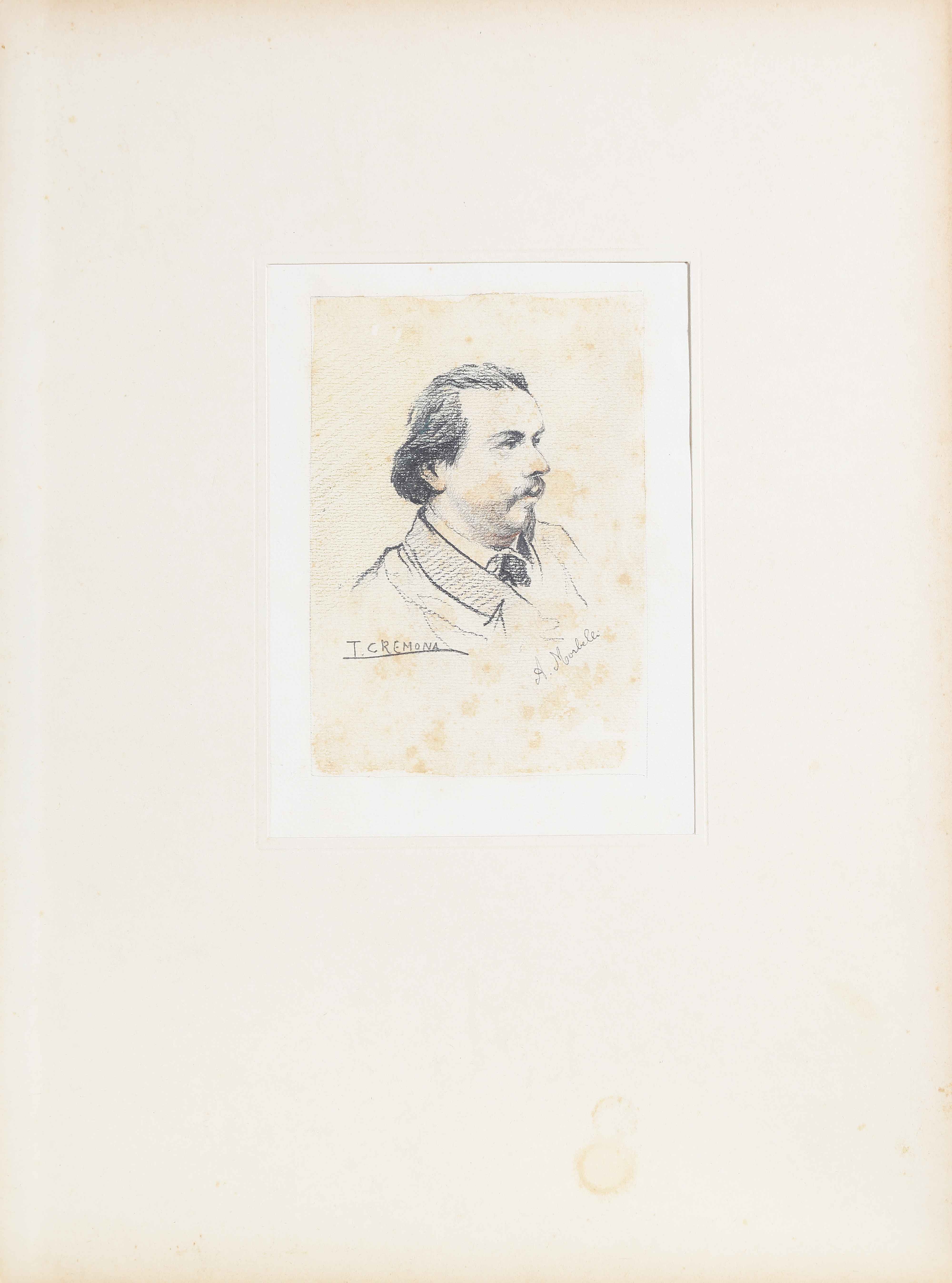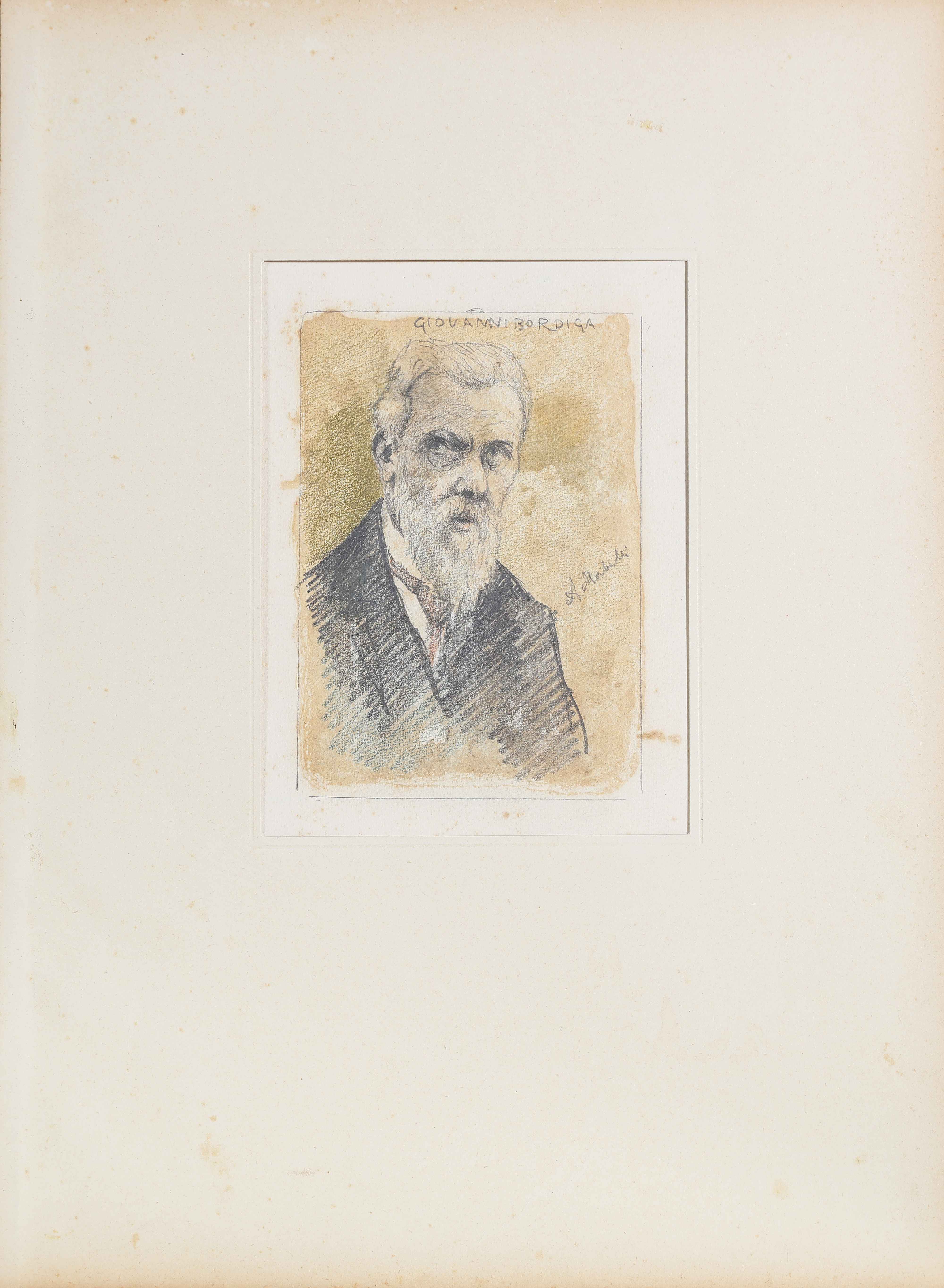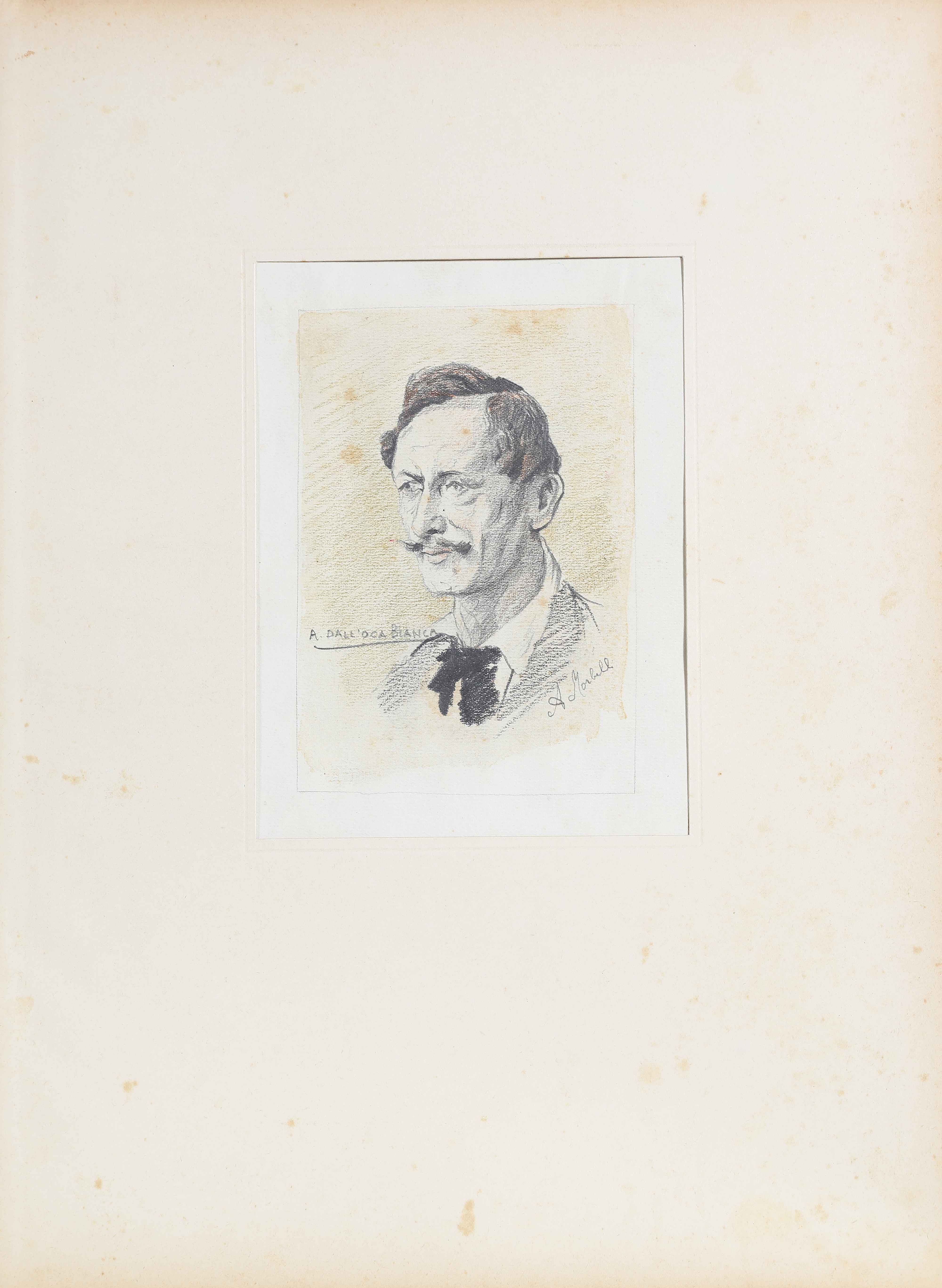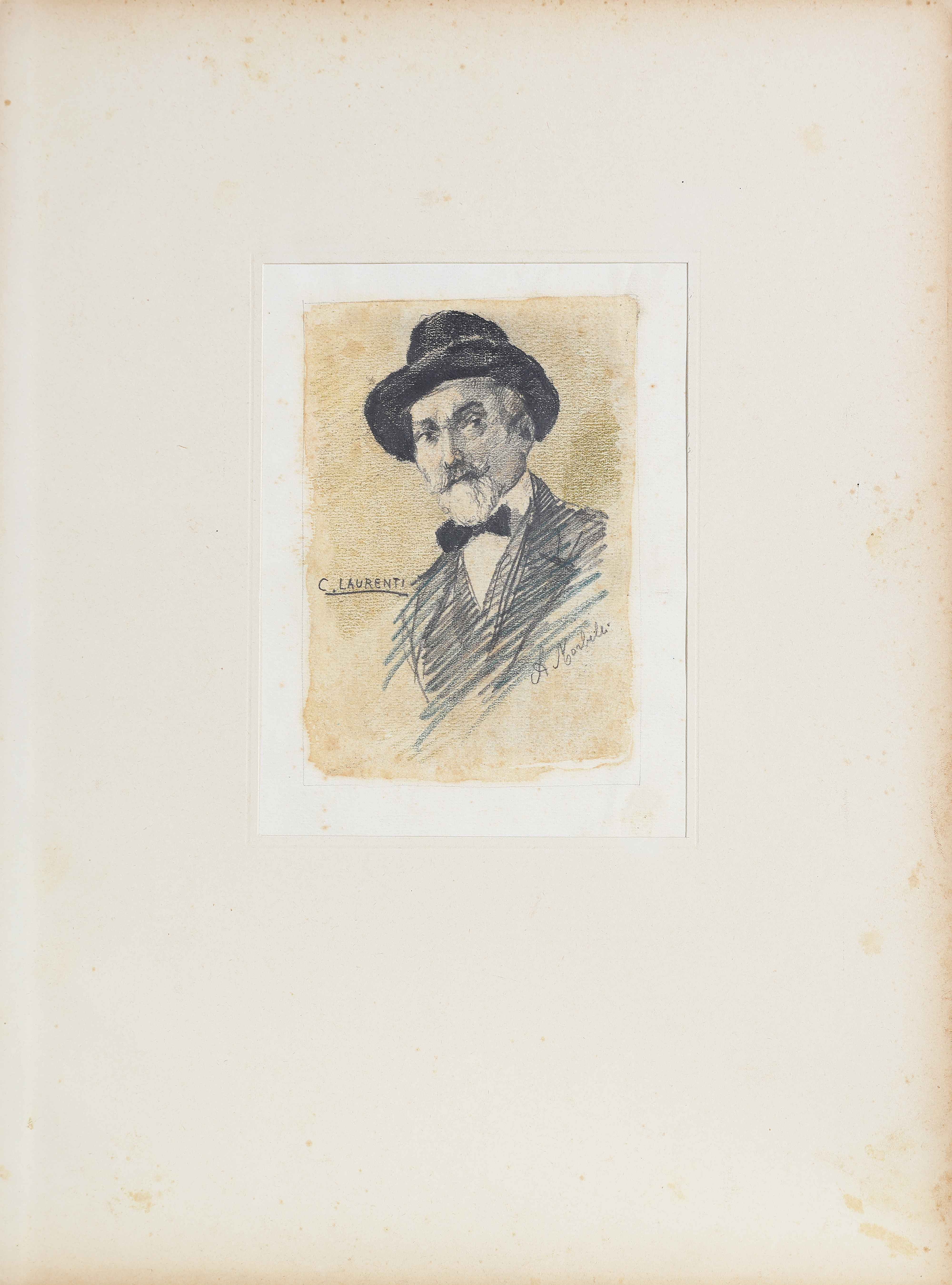 MORBELLI ANGELO (1853 - 1919) Cartella contenente 30 ritratti di artisti. Carta. Cm 13,00 x 22,00. I ritratti rappresentano personaggi e artisti presenti alla Biennale di Venezia, 1879. Inseriti nel loro quaderno originale. Provenienza: Collezione Andrea Gloria, Padova. Firmati.