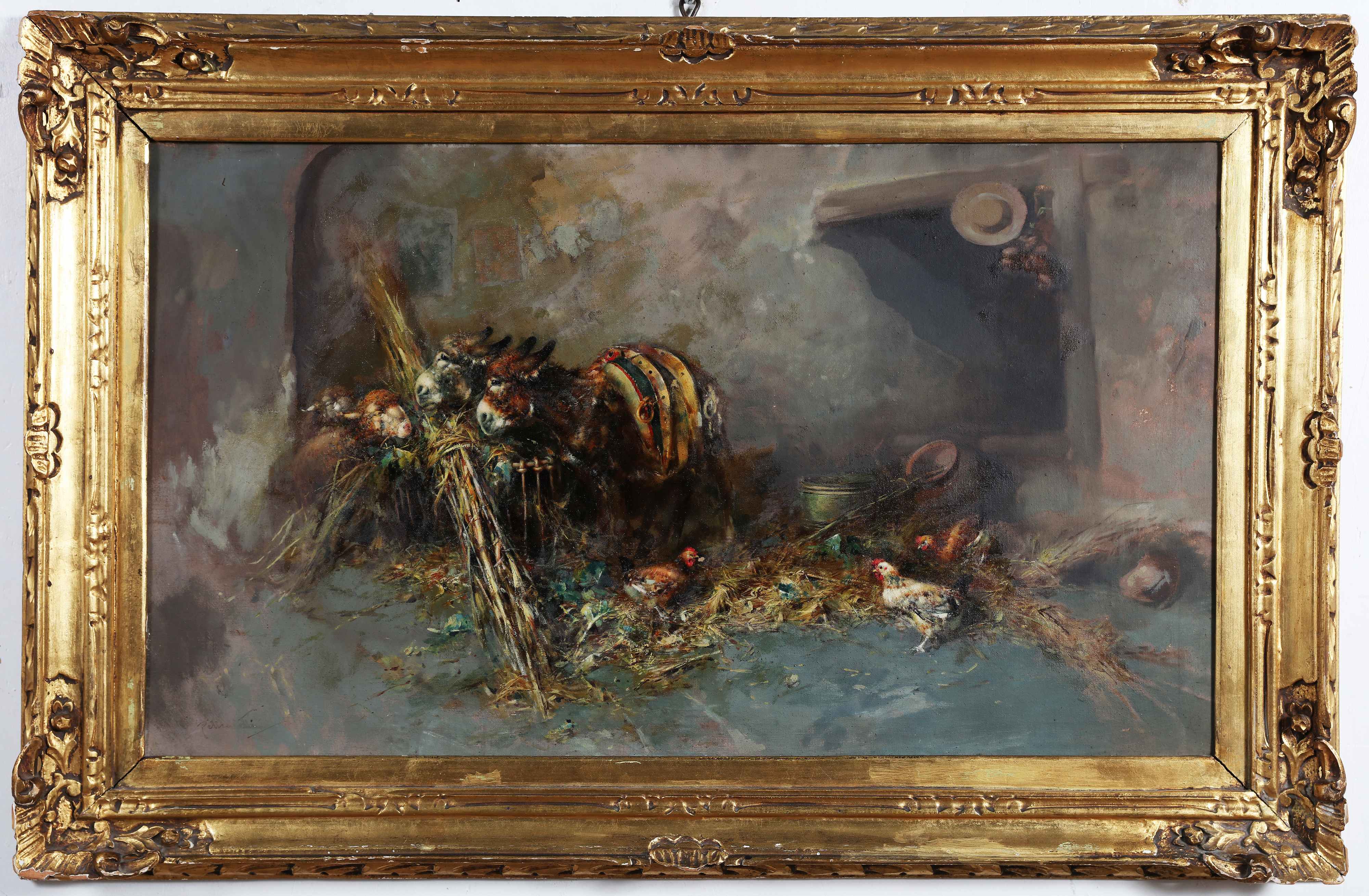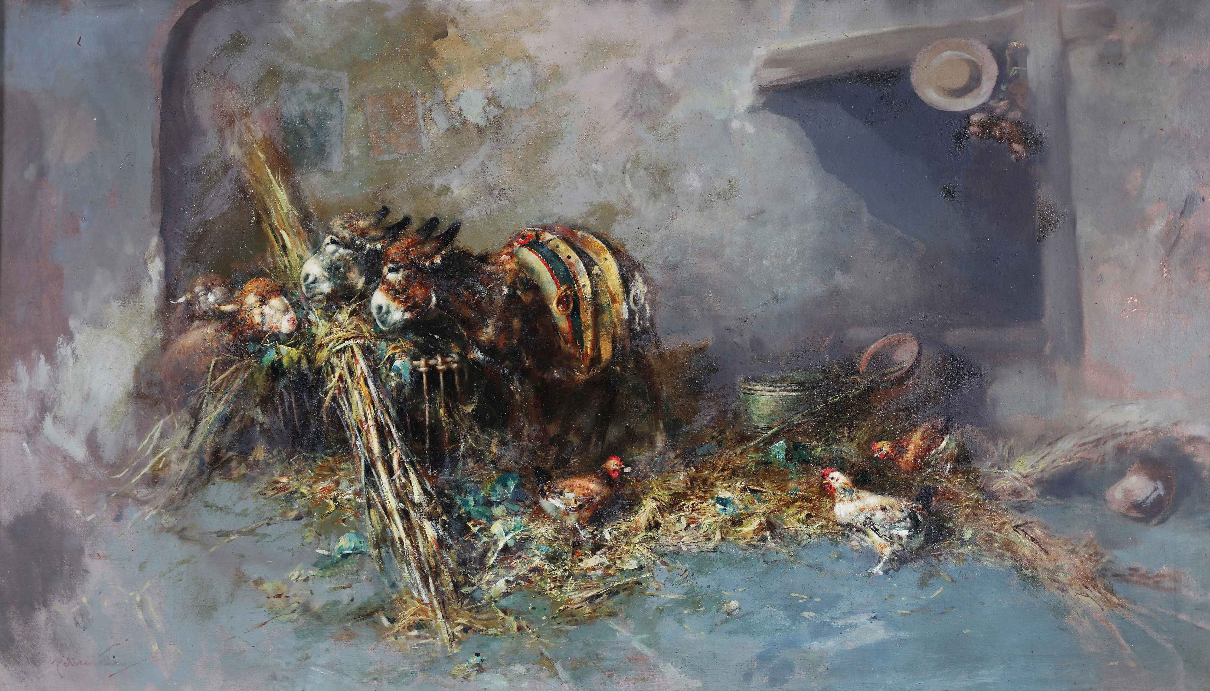 PELLICCIOTTI TITO (1871 - 1950) Stalla. Olio su tela. Cm 89,00 x 53,00. Firma in basso a sinistra. Cornice presente