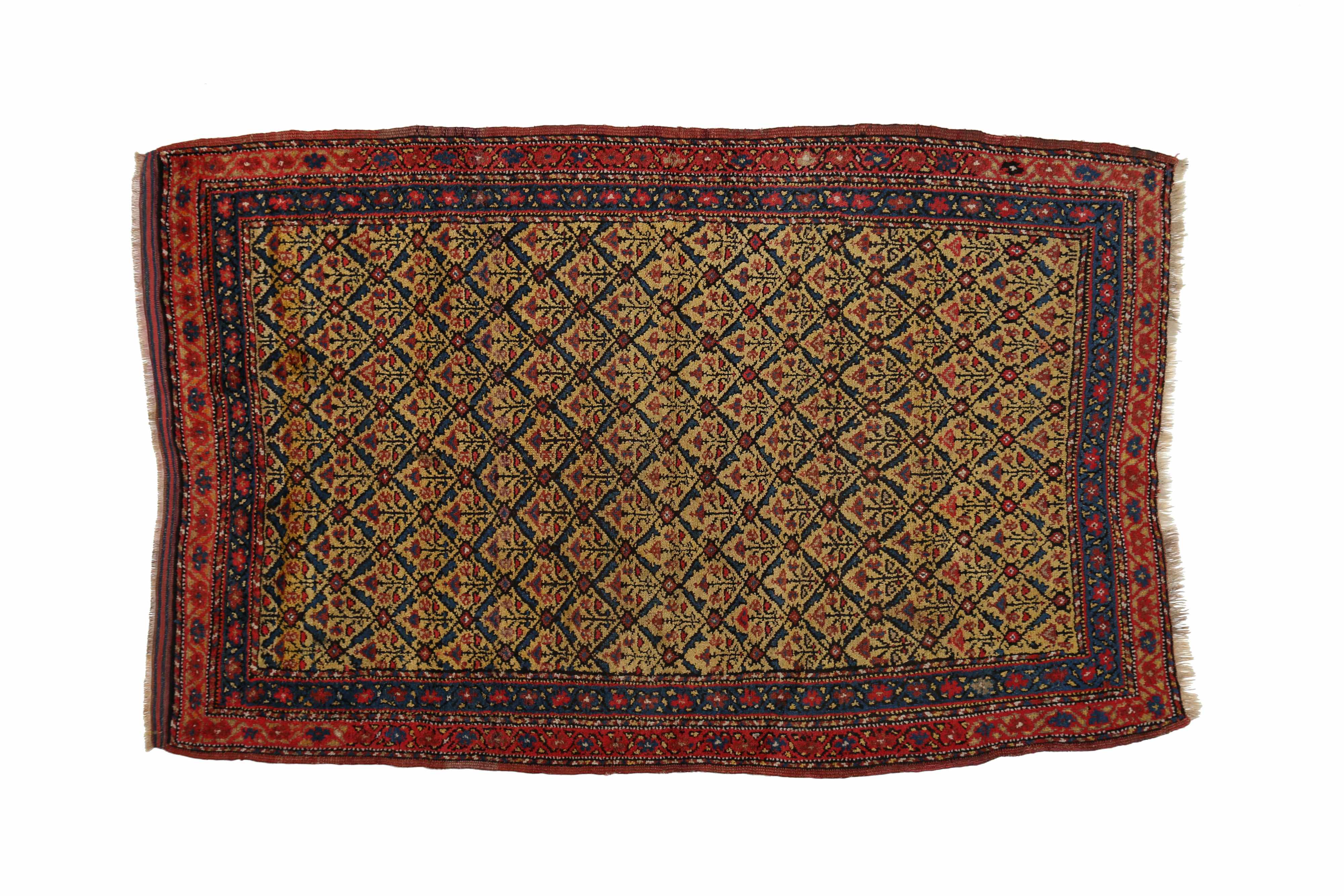 CURDISTAN Tappeto orientale. Persia occidentale. 1925. Lana e cotone. Cm 129,00 x 194,00. Fondo giallo, ghiglia. Ottima condizione.