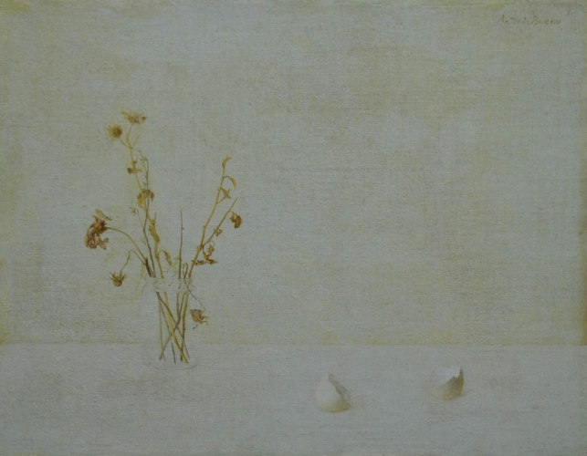 ANTONIO BUENO 1918 - 1984 " Fiori e gusci d'uovo ", anni 50 Olio su tela, cm. 31 x 40 Firmato in alto a destra Autentica Archivio Bueno su fotografia Pubblicato a Catlogo Generale, Vol. II Prov. Collezione Privata