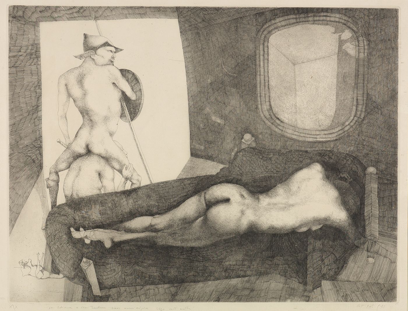 ATTARDI UGO (Sori (GE) 1923 - 2006 Roma) - "Nello studio" 1971, 49,5x65 incisione, es. X/X. Opera firmata e datata in basso a destra, numerata in basso a sinistra, dedicata ad personam in basso a sinistra (a matita sul foglio)