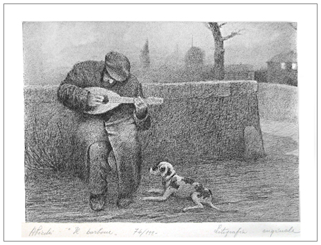 ANCHISE PICCHI Crespina 1911 – Collesalvetti 2007 Il barbone 1988 Litografia es.74/199. Firma e titolo in b. a s. , scritta “Litografia originale” in b. a d.; sul cartone di chiusura etichetta studio dell’artista. (34,3 x 45,5 foglio – 25 x 35 lito.) Pubbl.: “Anchise Picchi la grafica” catalogo a cura di Lido Pacciardi, Bandecchi & Vivaldi Editori, Pontedera, settembre 2005, p.182, tav. 295. B.A.: 50