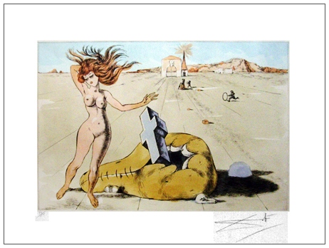 SALVADOR DALI’ Figueres (Spagna) 1904 – 1989 Figueres (Spagna) Senza titolo Acquaforte e acquatinta colorata a mano es.74/150. Firma in b. a d. + timbro a secco in b. a s. (60 x 77 foglio – 39 x 55 inc.) B.A.: 250