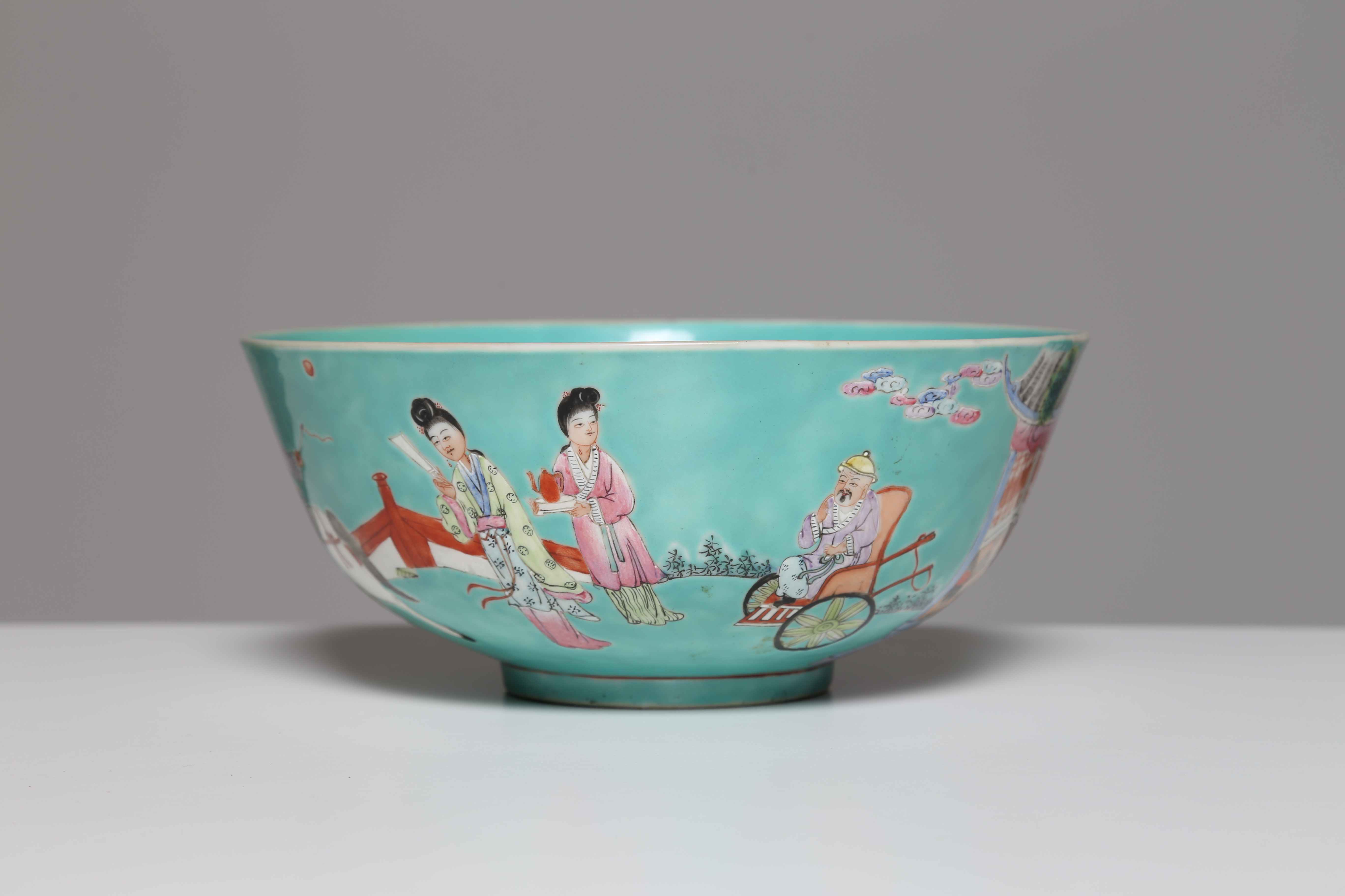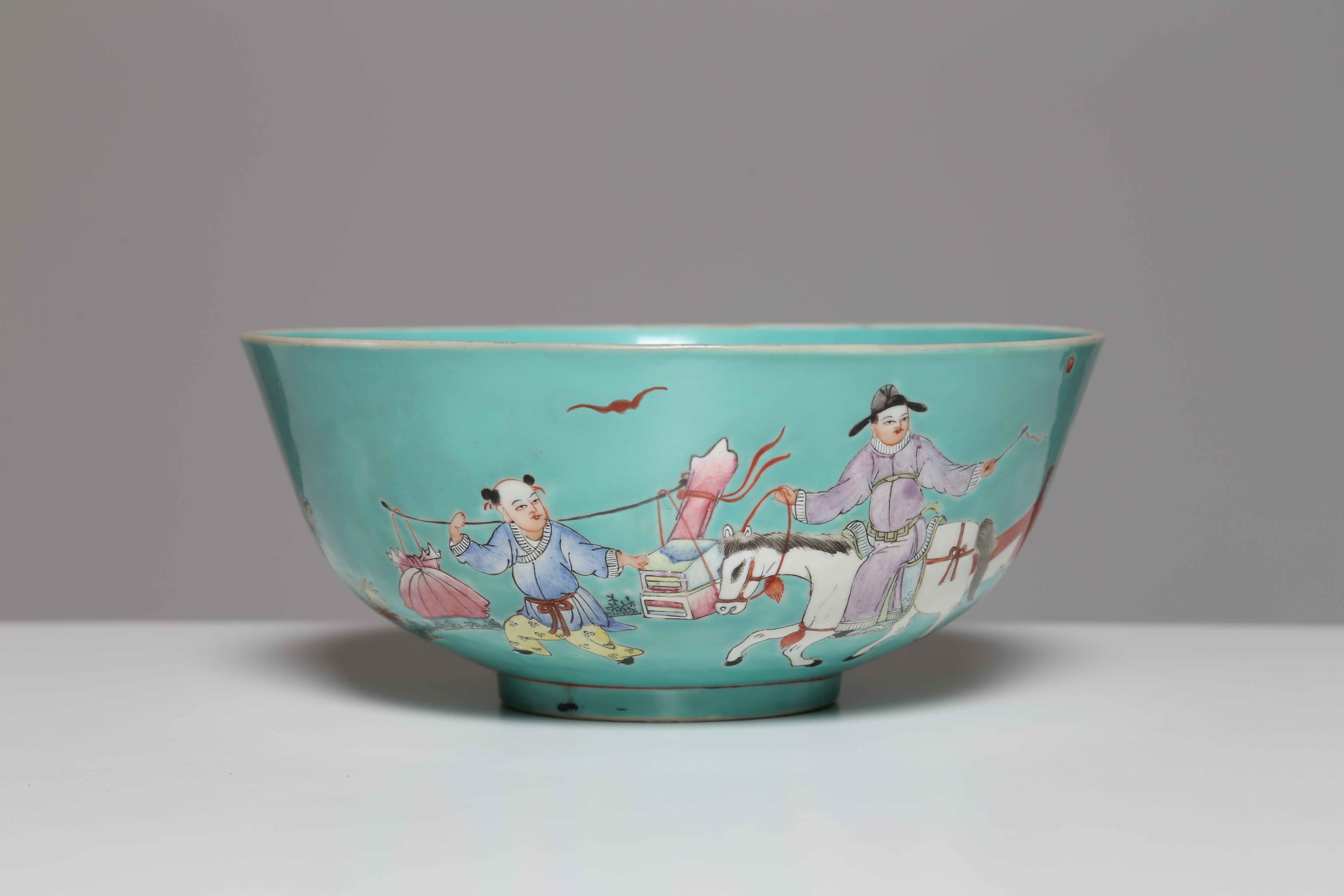 Arte Cinese Ciotola verde con raffigurazione di personaggi Cina, dinastia Qing, periodo Daoguang 1820 - 1850. -. Cm 10,00 x 23,00.