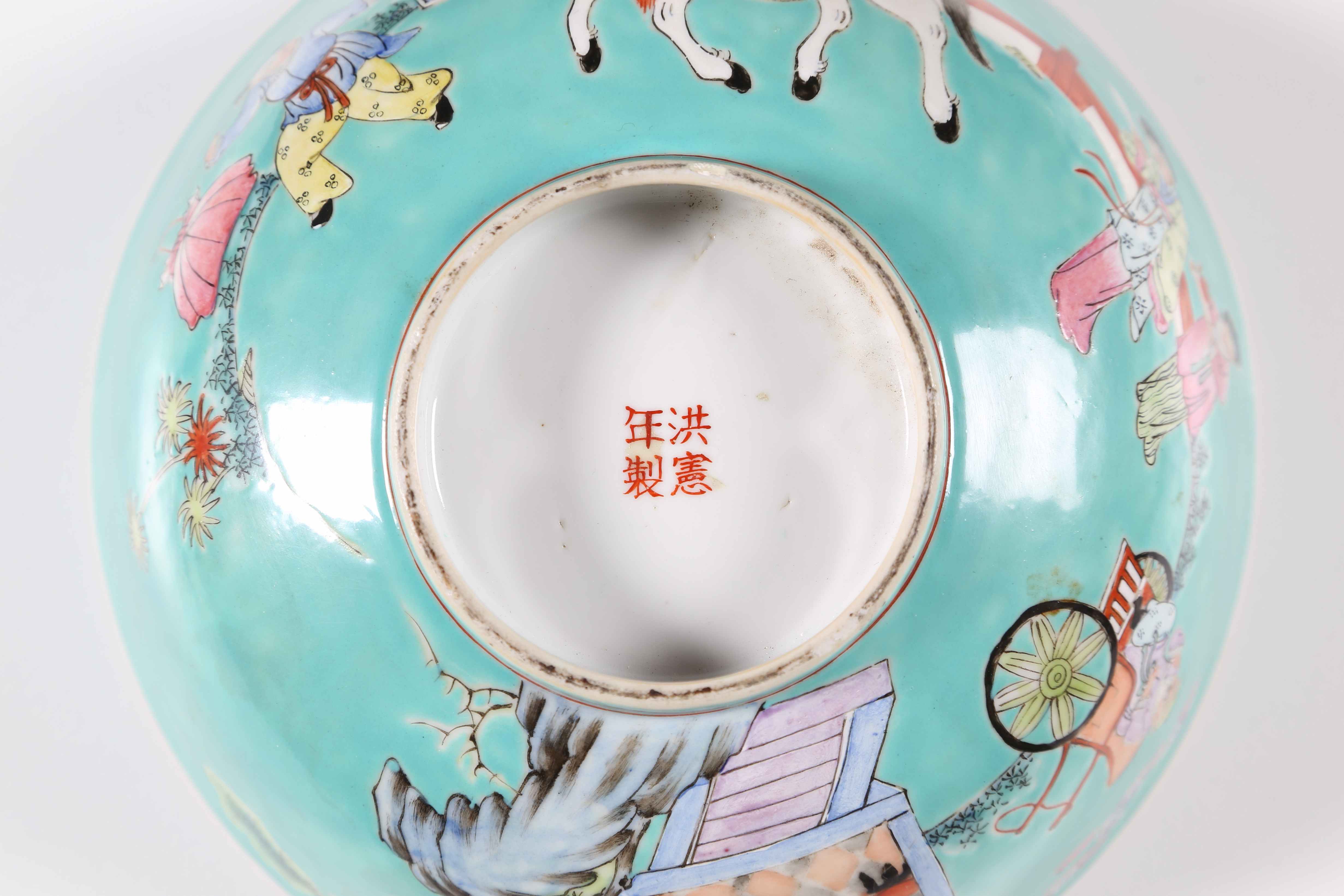 Arte Cinese Ciotola verde con raffigurazione di personaggi Cina, dinastia...