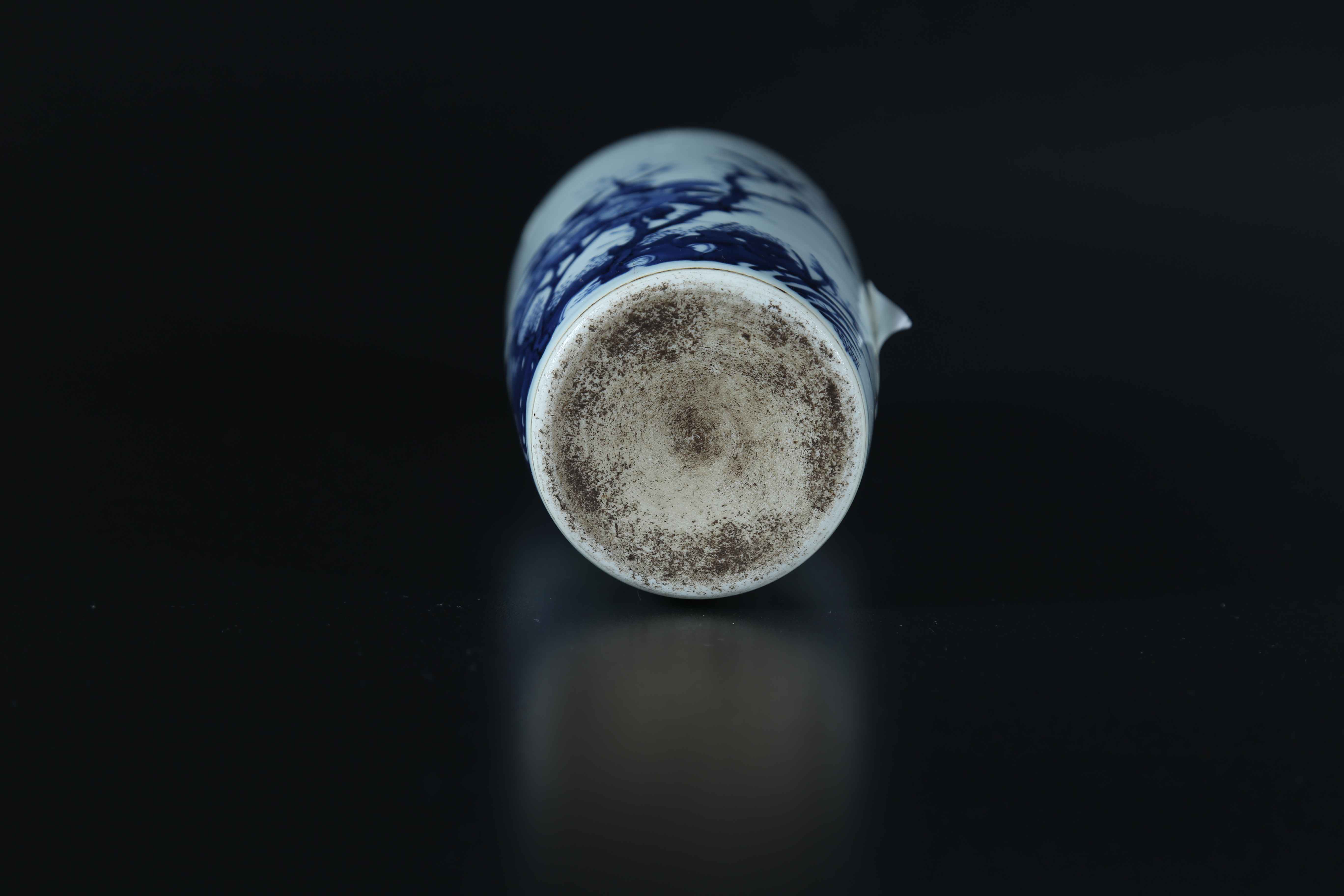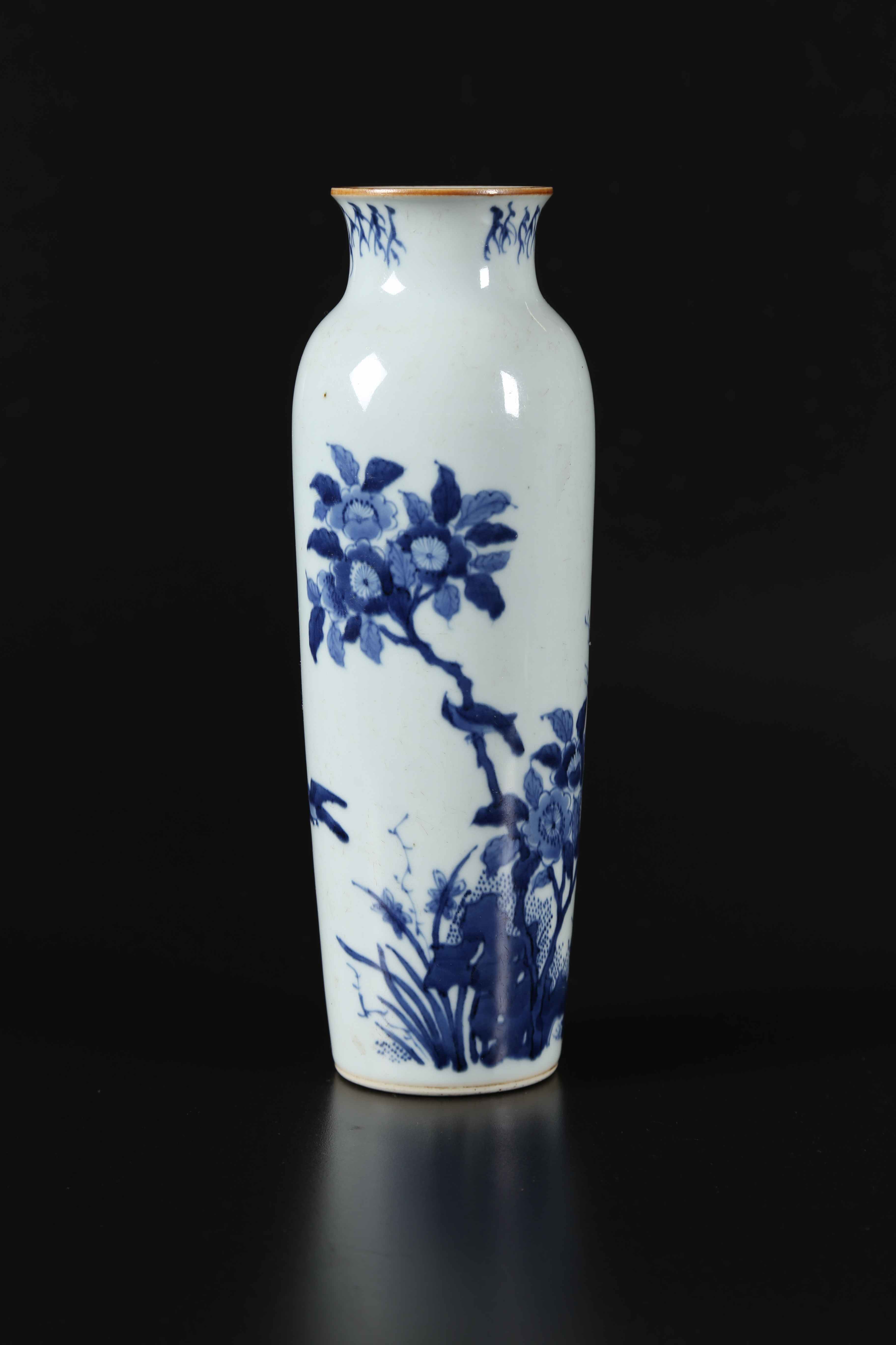 Arte Cinese Vaso in porcellana bianco/blu raffigurante fiori ed uccelli Cina, XX secolo. -. Cm 26,00. Affusolato vaso con bocca leggermente estroflessa decorato in blu sottocoperta con motivi vegetali.