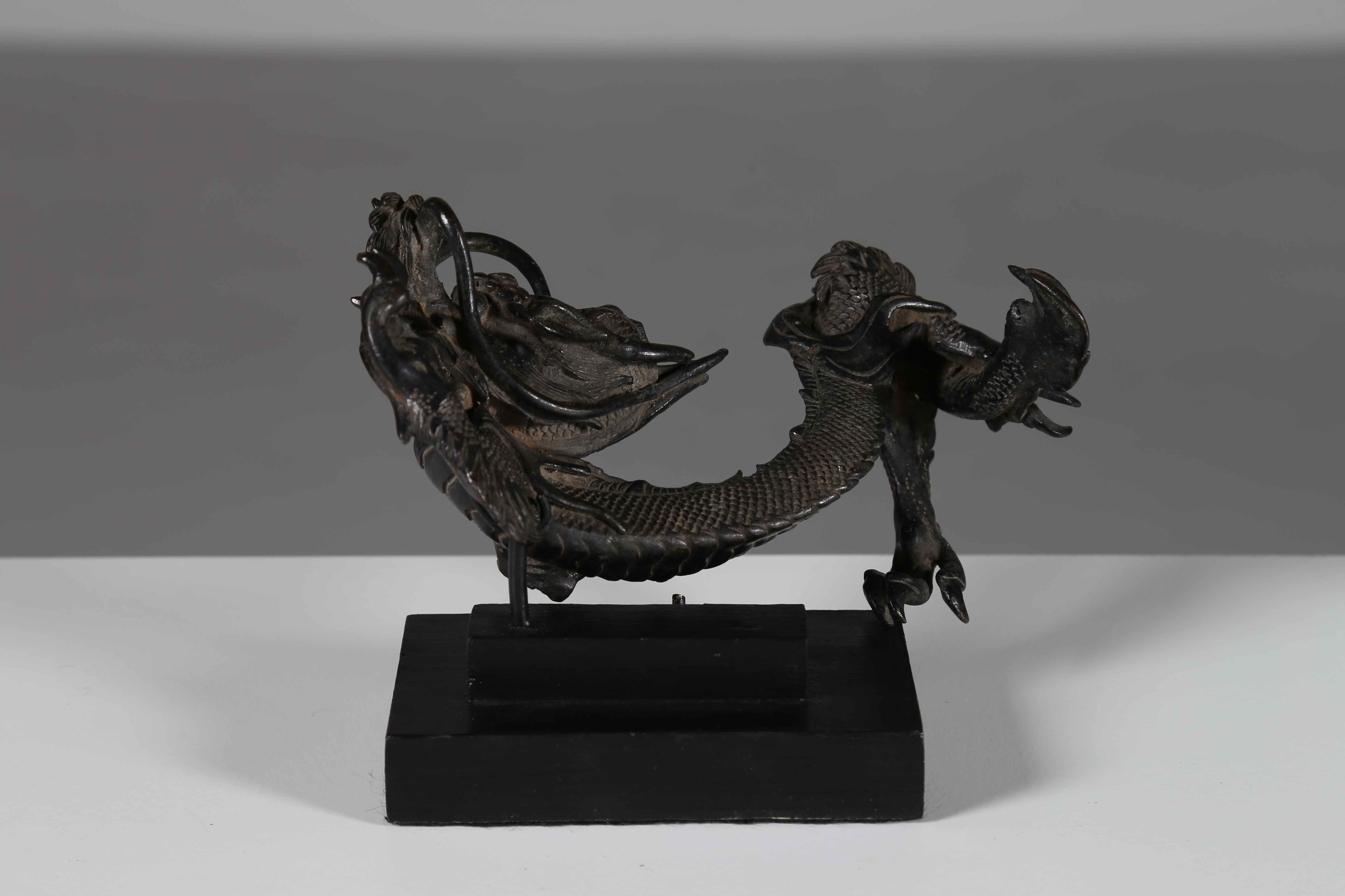 Arte Cinese Dragone in bronzo Cina, XVIII secolo. . Cm 17,00. Bel dragone in bronzo a patina scura con testa e squame finemente cesellate. Completo di base in legno.