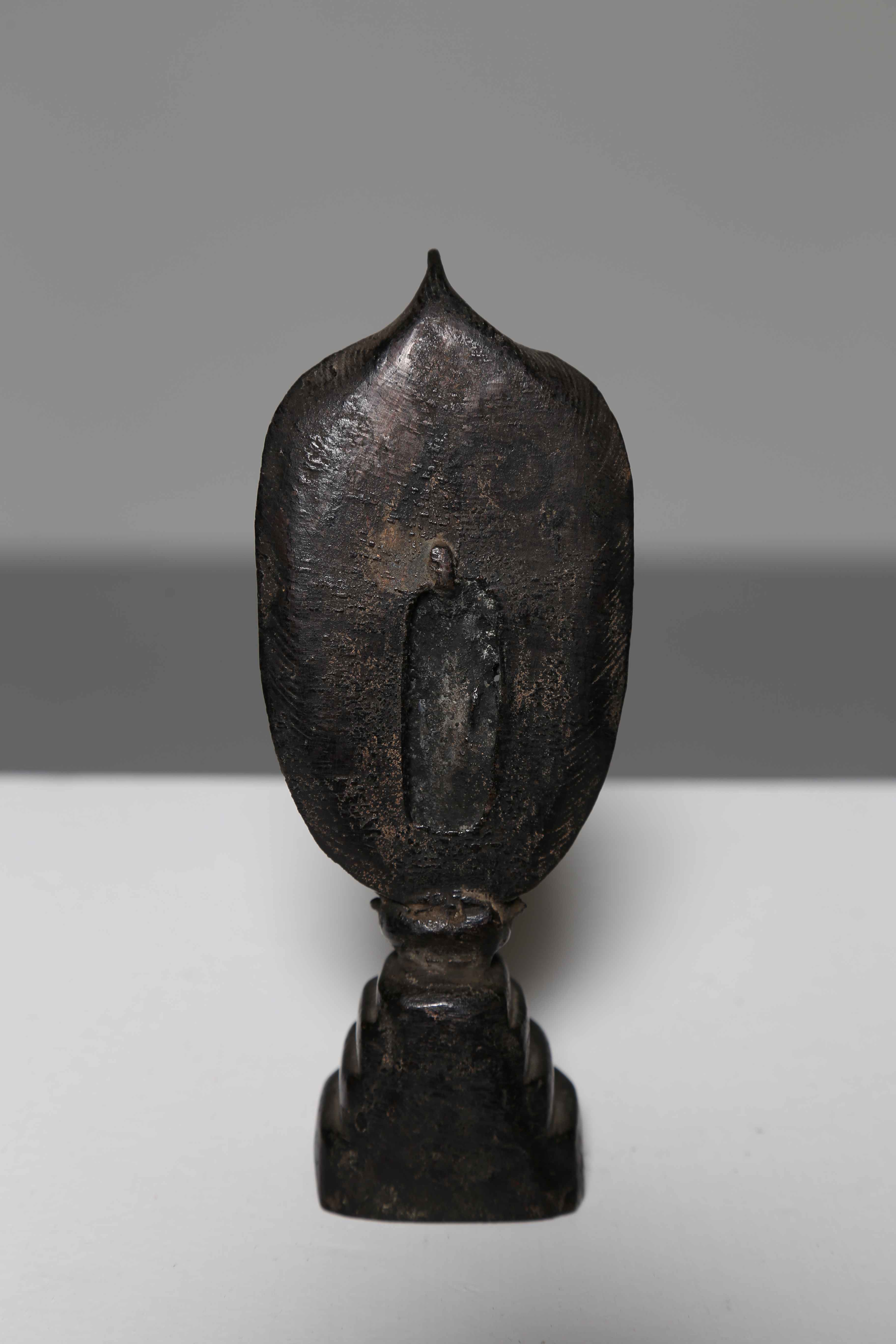 Arte Cinese Statua in bronzo raffigurante Avalokitesvara Cina, dinastia Yuan, XIII - XIV secolo. . Cm 14,50. Stante su base a loto singolo a sua volta appoggiata ad un supporto a più strati che sostiene la mandorla fiammeggiante dietro la figura.