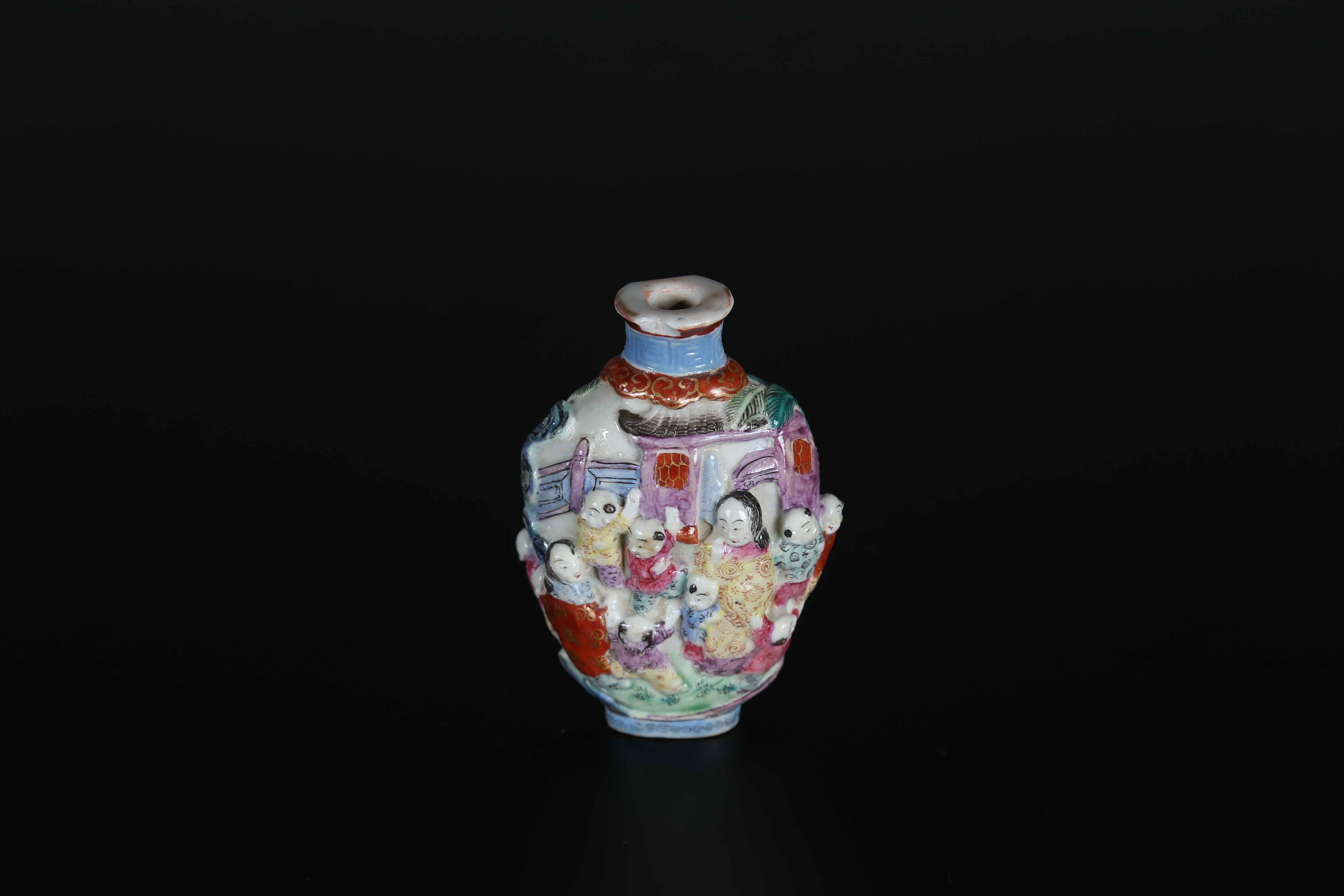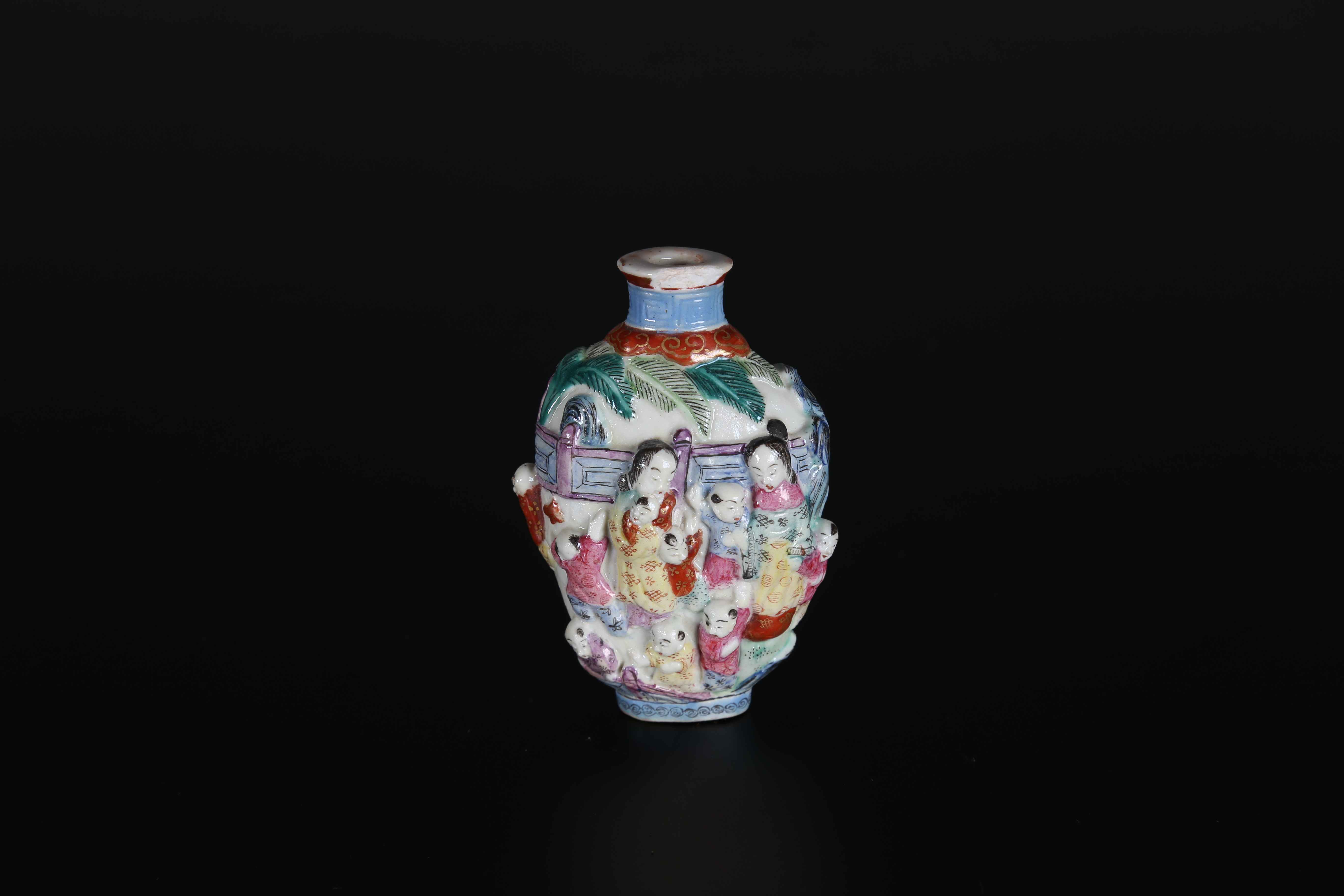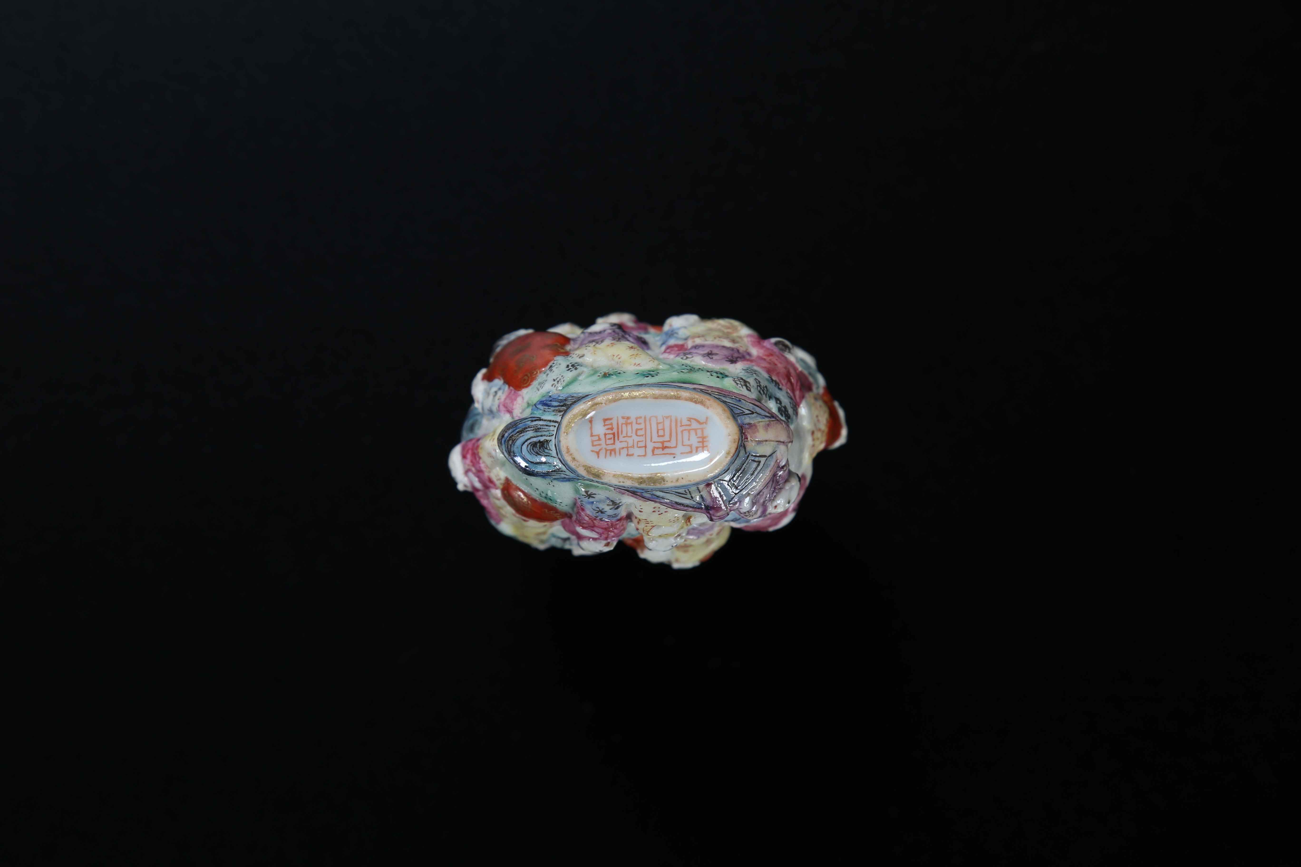 Arte Cinese A famille rose porcelain snuff bottle with high-relief decoration