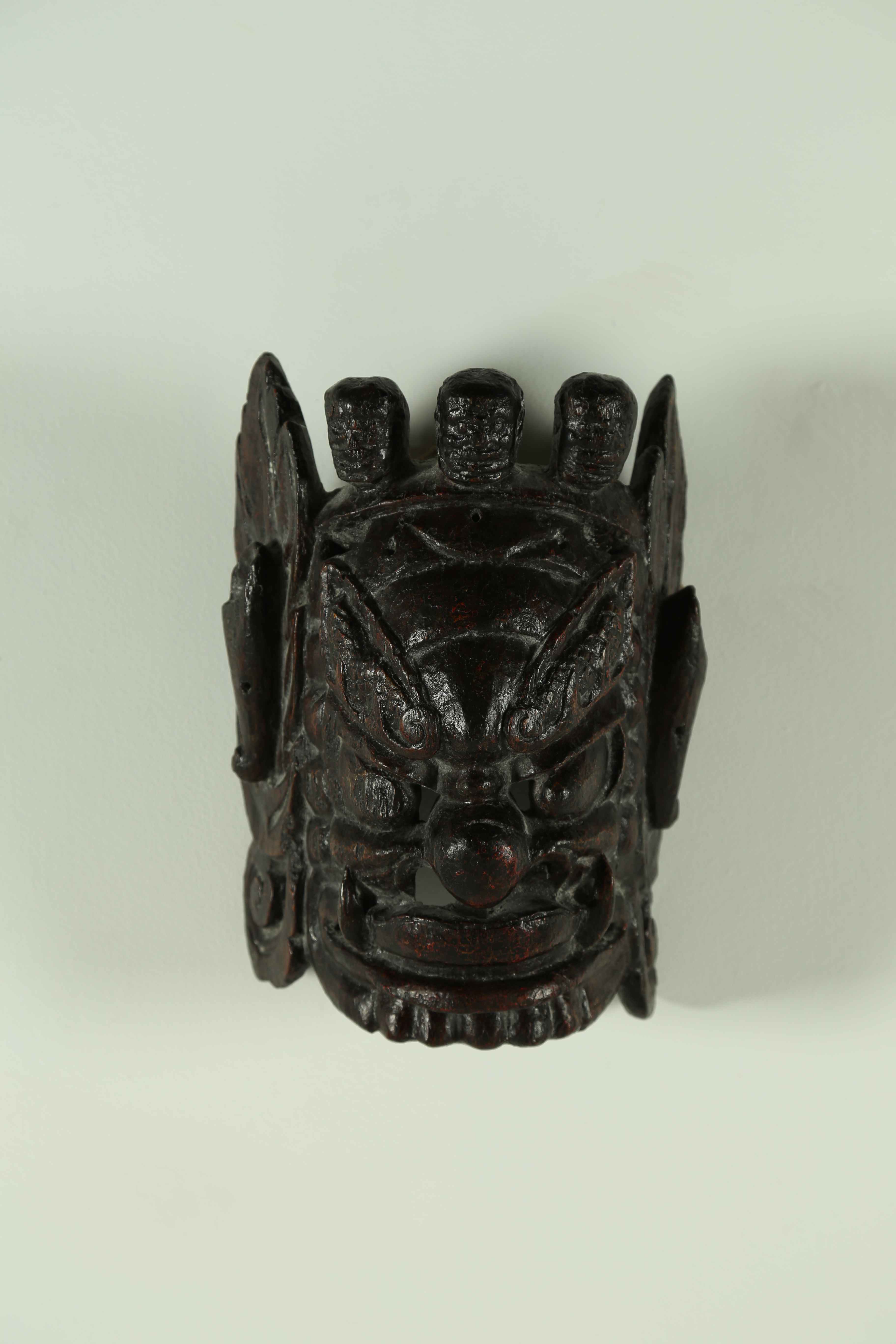 Arte Himalayana A wooden mask depicting a Dharmapala with polychrome remains