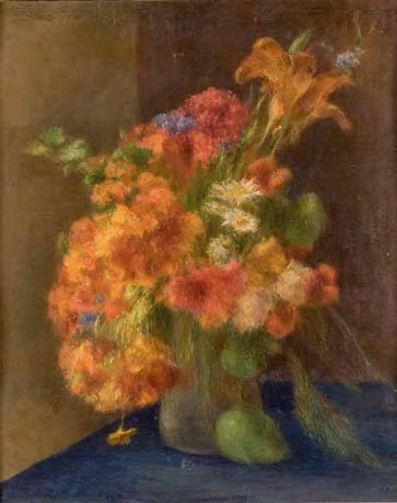UGO BERNASCONI Buenos Aires 1874 – Cantù 1960 NASTURZI, 1930 CIRCA olio su tavola, cm 73x60. Monogrammato in basso a destra: UB. Firmato e titolato al verso: U. Bernasconi “Nasturzi” Provenienza: Collezione Avv. Verdirame; Galleria d’Arte Biards (etichetta al verso). Bibliografia: Claudia Gian Ferrari, Natura morta natura viva nella pittura del Novecento, Ed. S.I., Milano 2003, pag. 26, riprodotto.