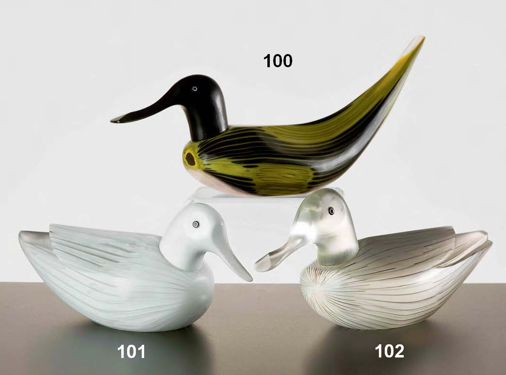TONI ZUCCHERI Anatra in vetro massiccio bianca e cristallo, con testa...