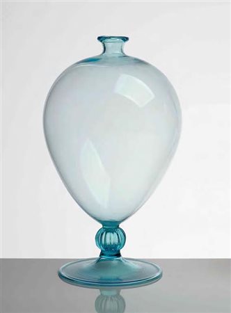 VITTORIO ZECCHIN Vaso “Veronese” in vetro acquamare soffiato e lavorato a mano, il lotto presenta un restauro. altezza cm 32,5. Firma Incisa: Venini Italia 79
