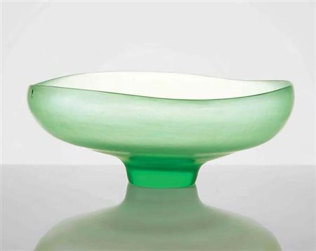 TOBIA SCARPA Grande ciotola in vetro verde interamente battuta alla mola....