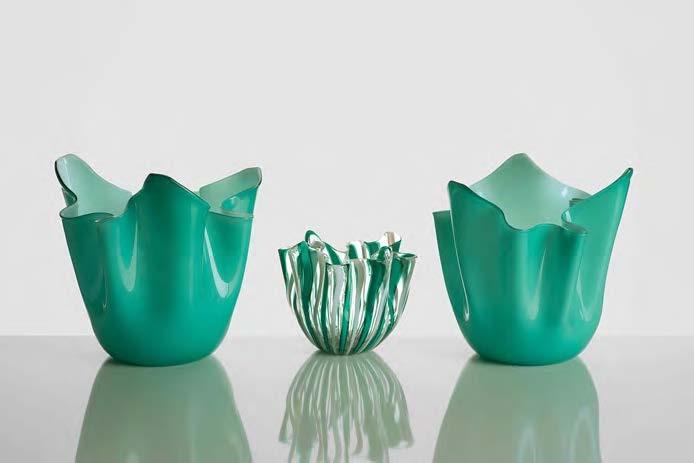 VENINI Lotto composto da coppia vasi fazzoletto in vetro incamiciato e 01...