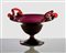 CLETO MUNARI Coppa in vetro viola con manici applicati in vetro rosso....