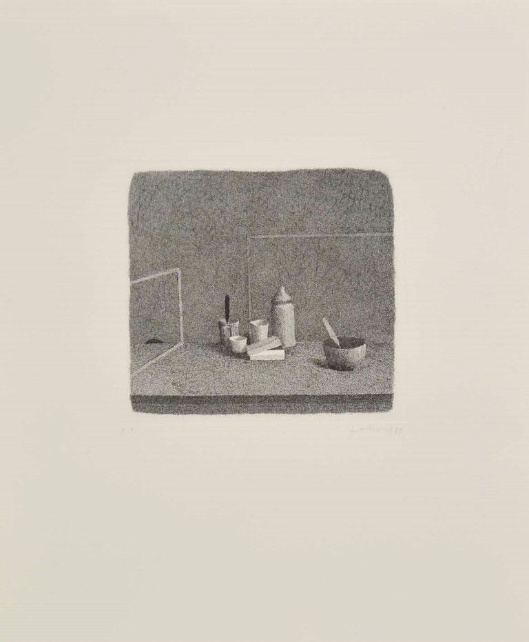 FERRONI GIANFRANCO Livorno 1927 - Bergamo 2001 Studio 1989 acquaforte es. p.a. 20x21,5(lastra) 50x40(foglio) firma e data in basso a destra tiratura in basso a sinistra
