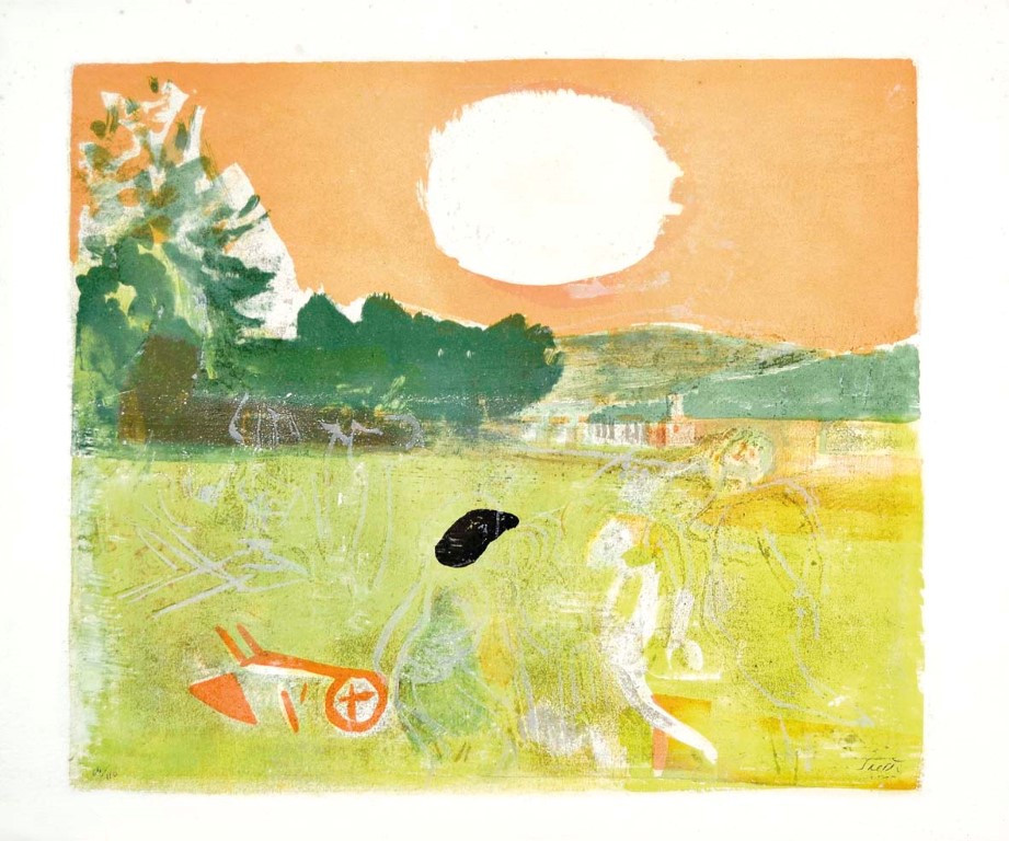 SAETTI BRUNO Bologna 1902 - Venezia 1984 Paesaggio serigrafia polimaterica es. 64/110 58x70 firma in basso a destra tiratura in basso a sinistra
