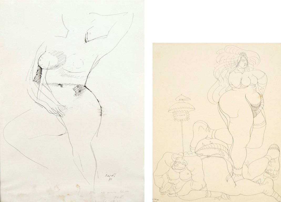 SAETTI B. - ZANCANARO T. Nudo 1973 - L'onta 1944 lotto di 2 disegni a china...
