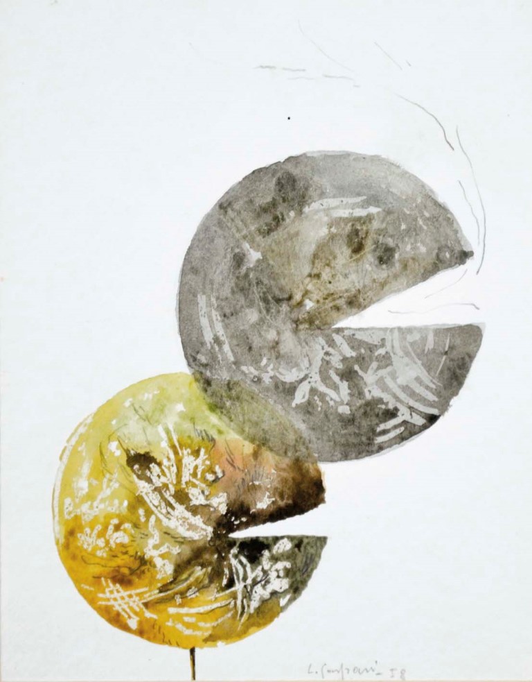 GASPARI LUCIANO Venezia 1913 - 2007 senza titolo 1958 tecnica mista su carta a mano 28x22 firma e data in basso a destra