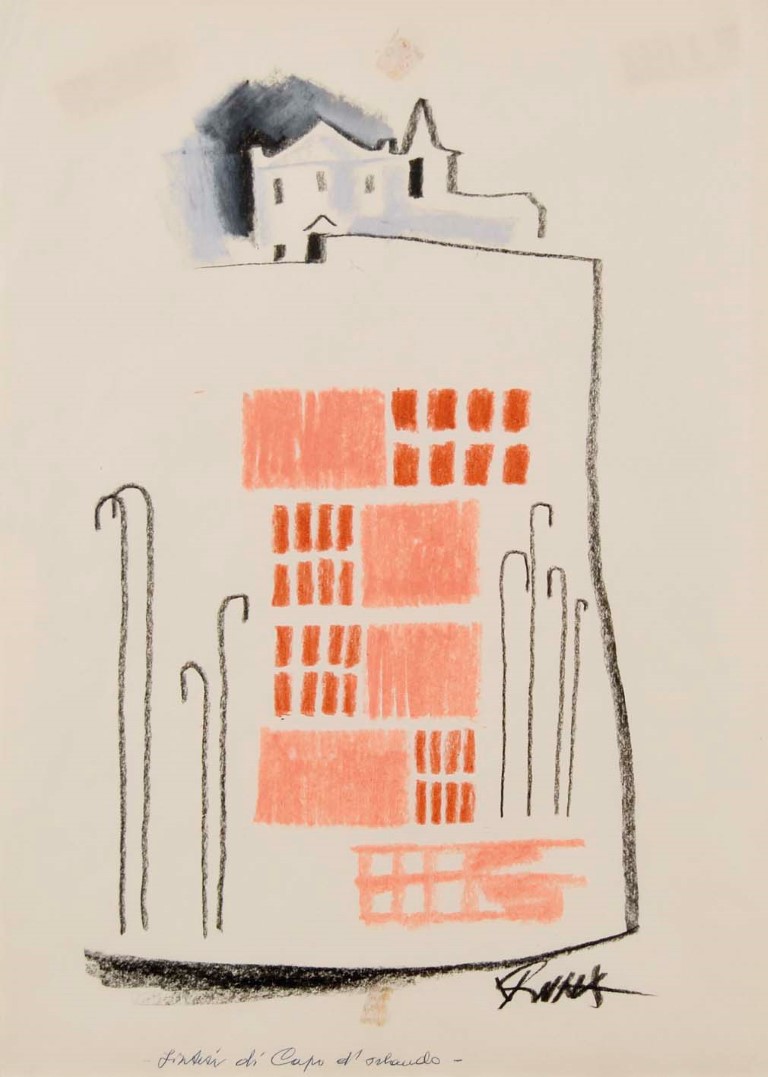 VENNA LANDSMAN LUCIO Venezia 1897 - Firenze 1974 Giardini di Capo d'Orlando tecnica mista su carta 50,5x36 firma in basso a destra, titolo in basso a sinistra