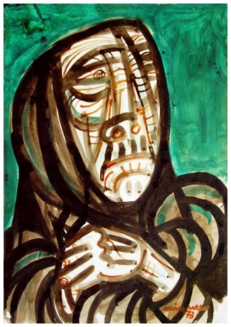 GIUSEPPE MIGNECO 1908 – 1997 Senza titolo 1973 Pittura su cartoncino intelato 36 x 25. Firma e data in b. a d.; dedica e firma sul verso.