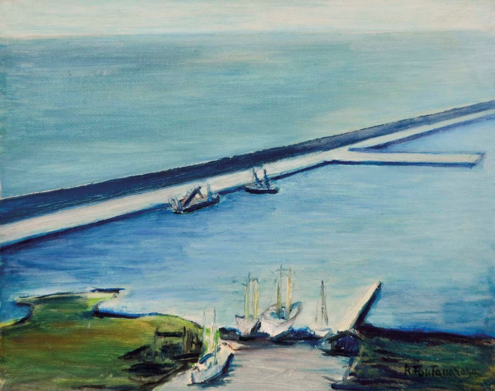 FONTANAROSA ROSETTA Padova 1905 Porticciolo olio su cartone telato 40x50...