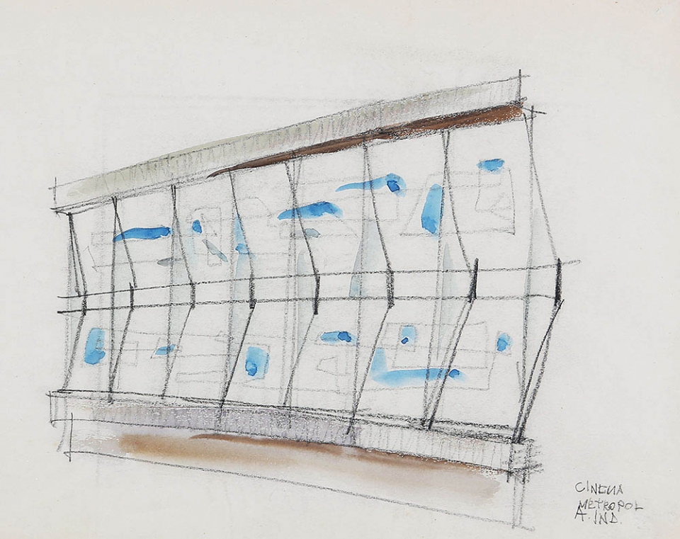 ALDO INDELICATO, 1927, Bozzetto per plafond del Cinema Metropol, (Messina) , 1956, Matita e acquarello su carta, cm. 22 x 28, Firmato in basso a destra, Autentica dell’ artista su fotografia,